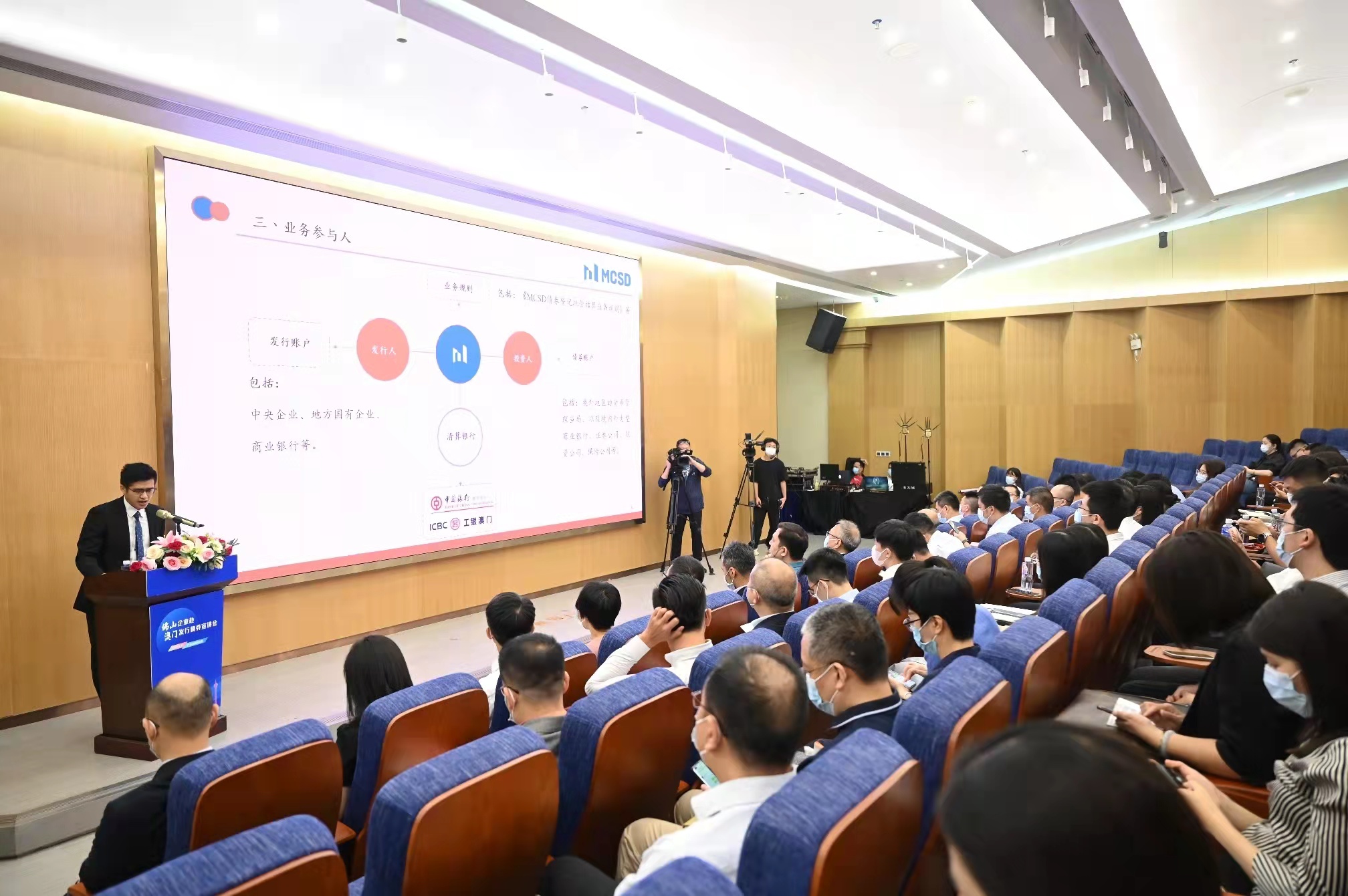 隨後,澳門金管局代表介紹澳門債券市場基本情況,並講解在澳門發行債券的具體要求、申請程序及審核流程等。截至2022年5月,在澳門發行或掛牌上市的未到期債券共有109隻,涵蓋金融債、公司債、綠色債券等債券品種,存量金額逾3,000億澳門元。