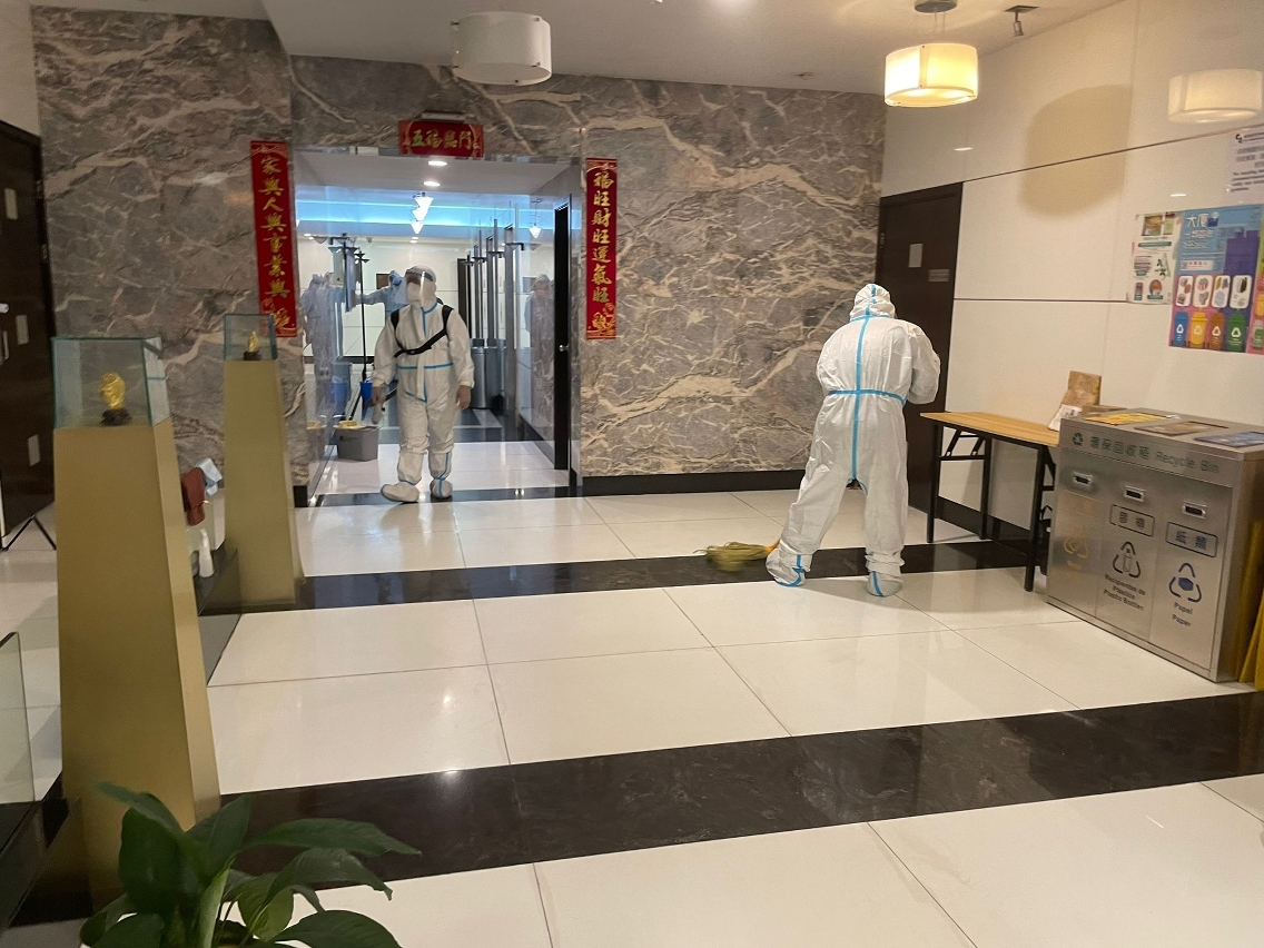 市政署對確診病例居所大廈加強清潔消毒(超級花城)