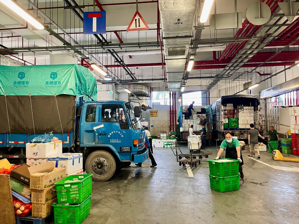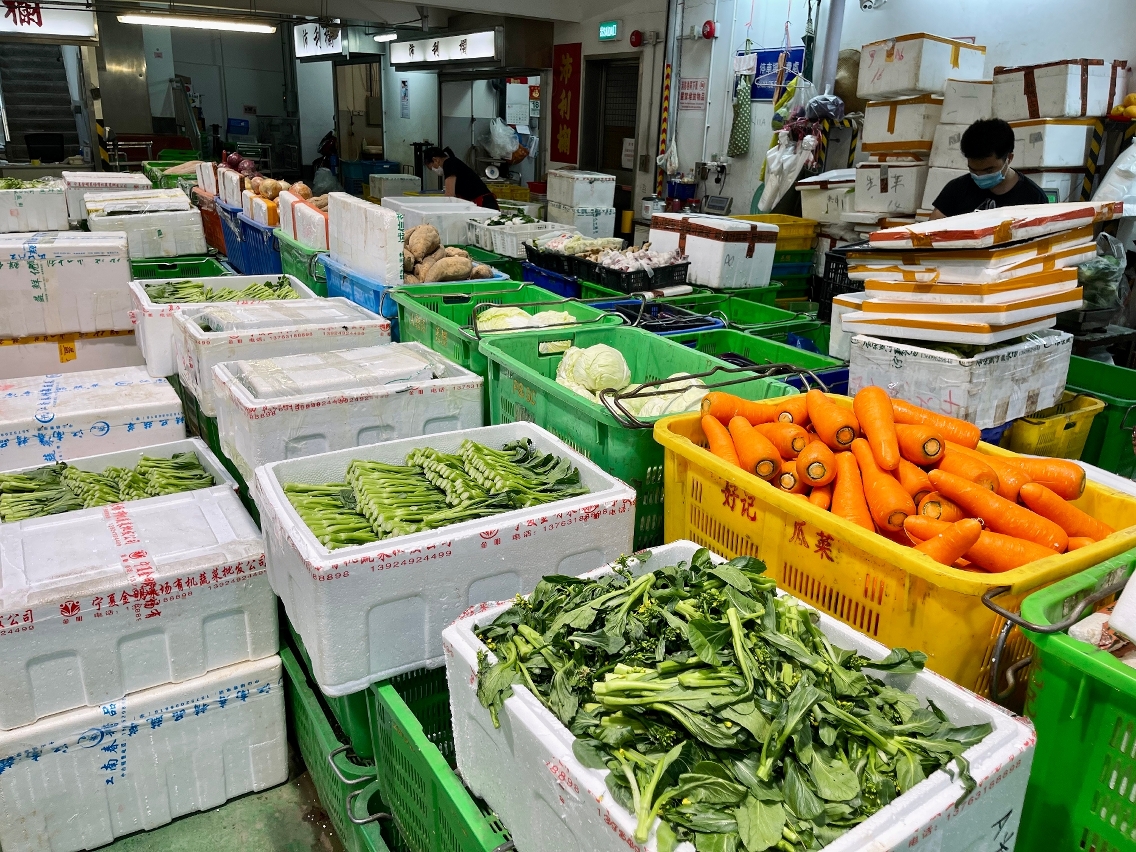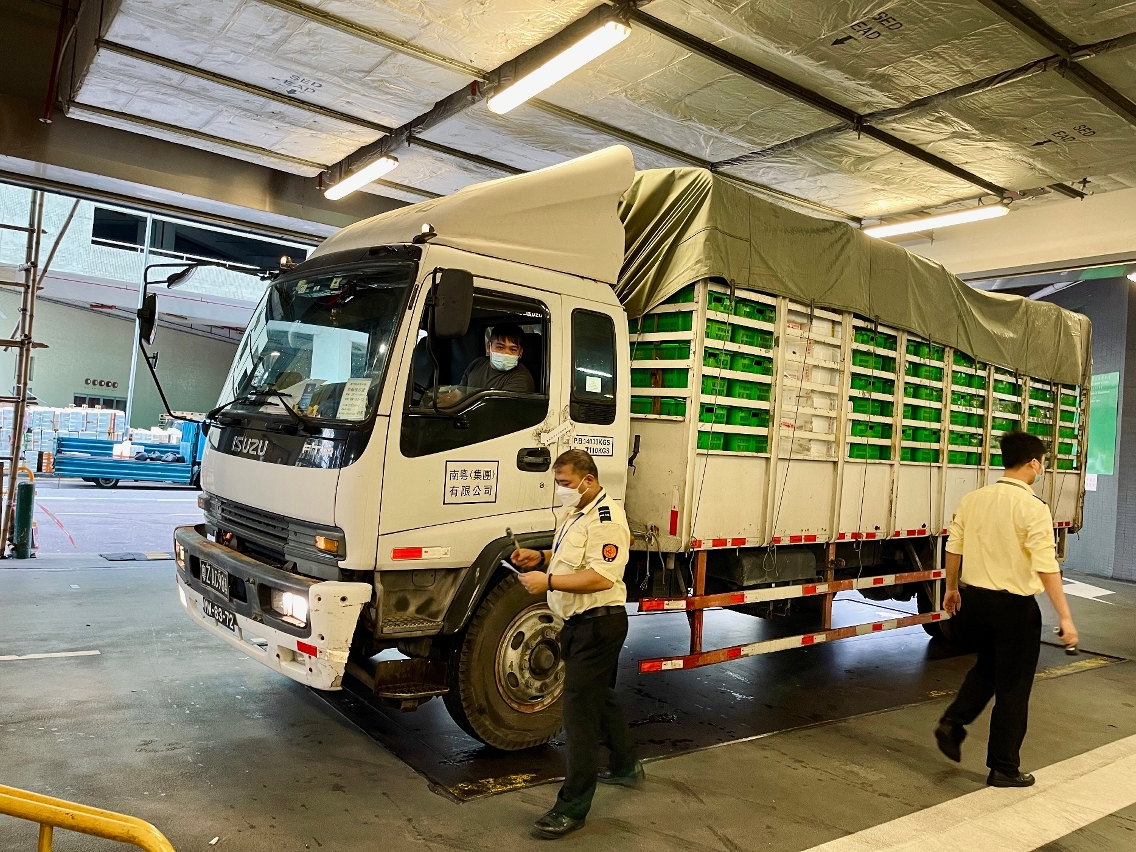 目前,每天供澳蔬菜約有242噸、水果約130噸、蛋品約63.2萬隻、活豬約340隻,供澳鮮活食品數量正常,不受疫情影響。