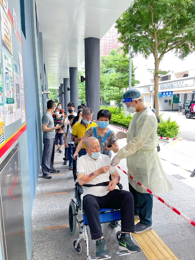 澳大工商管理學院、紹邦書院學生李曉諾多次參與全民核檢的義工服務,“今次十分順暢,團隊之間的分工合作和溝通令到整個過程都能按部就班完成。每次有公公婆婆跟我說聲辛苦了,我都會覺得非常溫暖,非常有意義。”