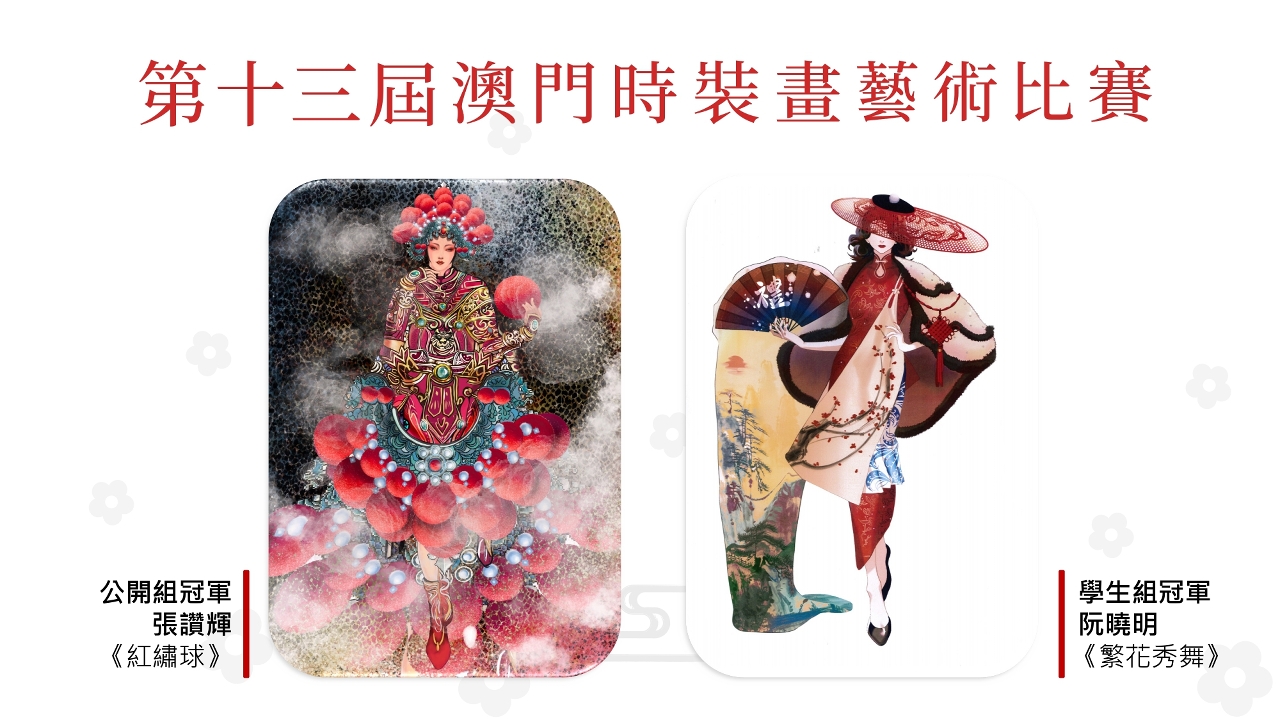 澳門生產力暨科技轉移中心主辦的“第13屆澳門時裝畫藝術比賽”公佈賽果。而為向公眾推廣時裝畫,該中心特設“網絡人氣獎”,讓公眾共同參與,投選心儀作品。
