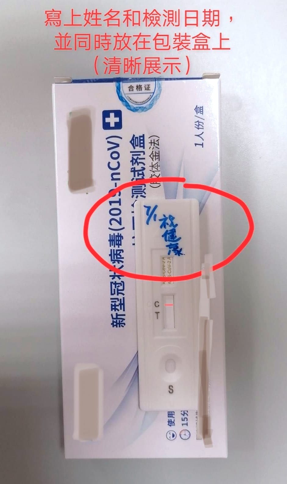 新型冠狀病毒感染應變協調中心(下稱應變協調中心)表示,為了總結不同牌子快速抗原檢測試劑實際應用情況、敏感性和特異性,建議居民在拍攝快速抗原檢測結果的照片時,連同抗原檢測試劑的包裝盒一同拍攝並上載(如圖),希望居民配合。