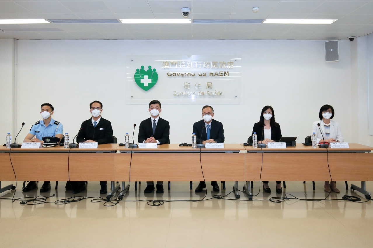 新型冠狀病毒感染應變協調中心今(5)日舉行記者會,衛生局仁伯爵綜合醫院李偉成醫務主任、教育及青年發展局非高等教育廳張子軒廳長、旅遊局傳播及對外關係廳劉鳳池廳長、衛生局疾病預防及控制中心傳染病防控處梁亦好處長、警察總局警務聯絡及公共關係處張健欣處長、治安警察局公共關係處李德輝處長分別介紹了本澳及鄰近地區整體防疫情況。