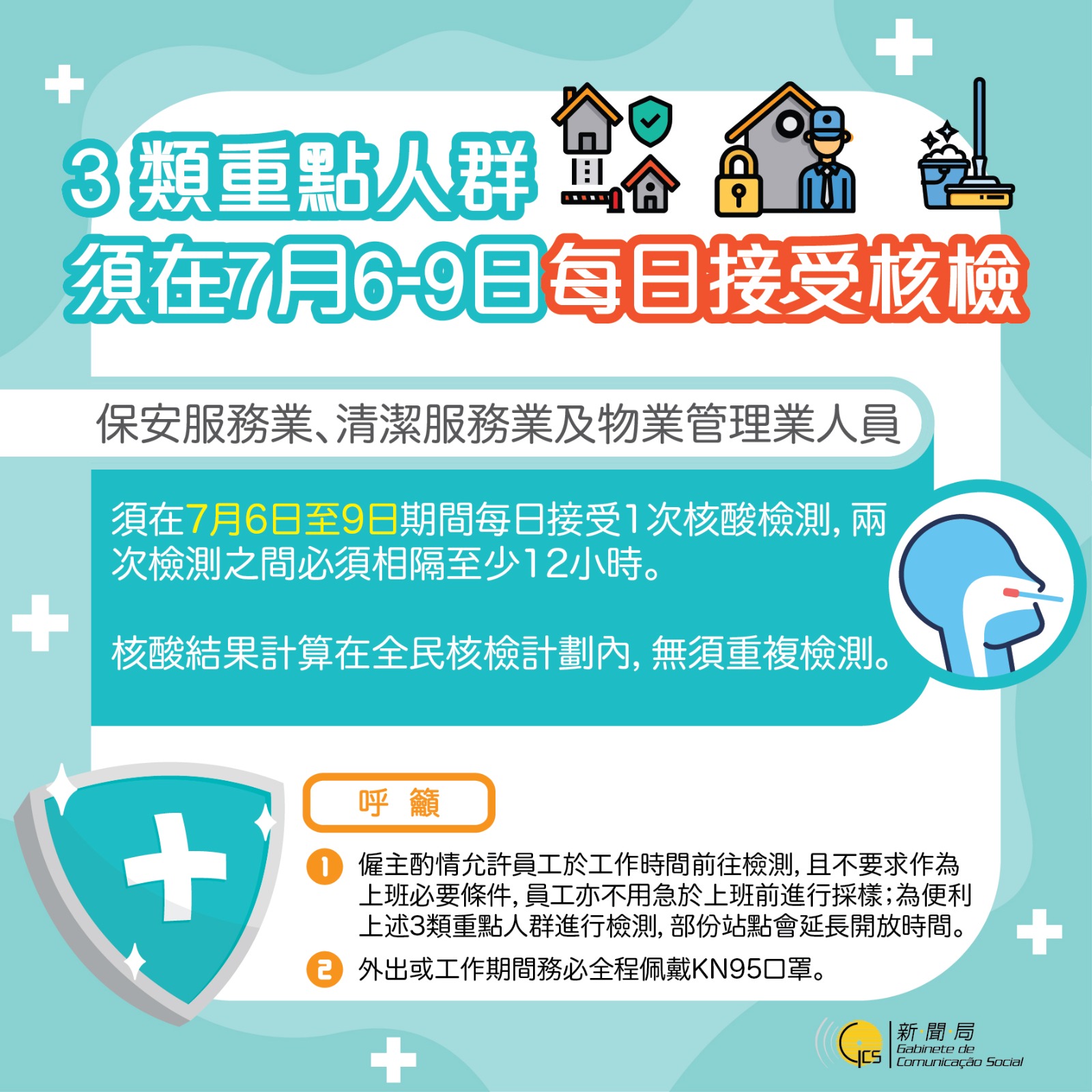 【圖文包】3類重點人群須在7月6-9日每日接受核檢