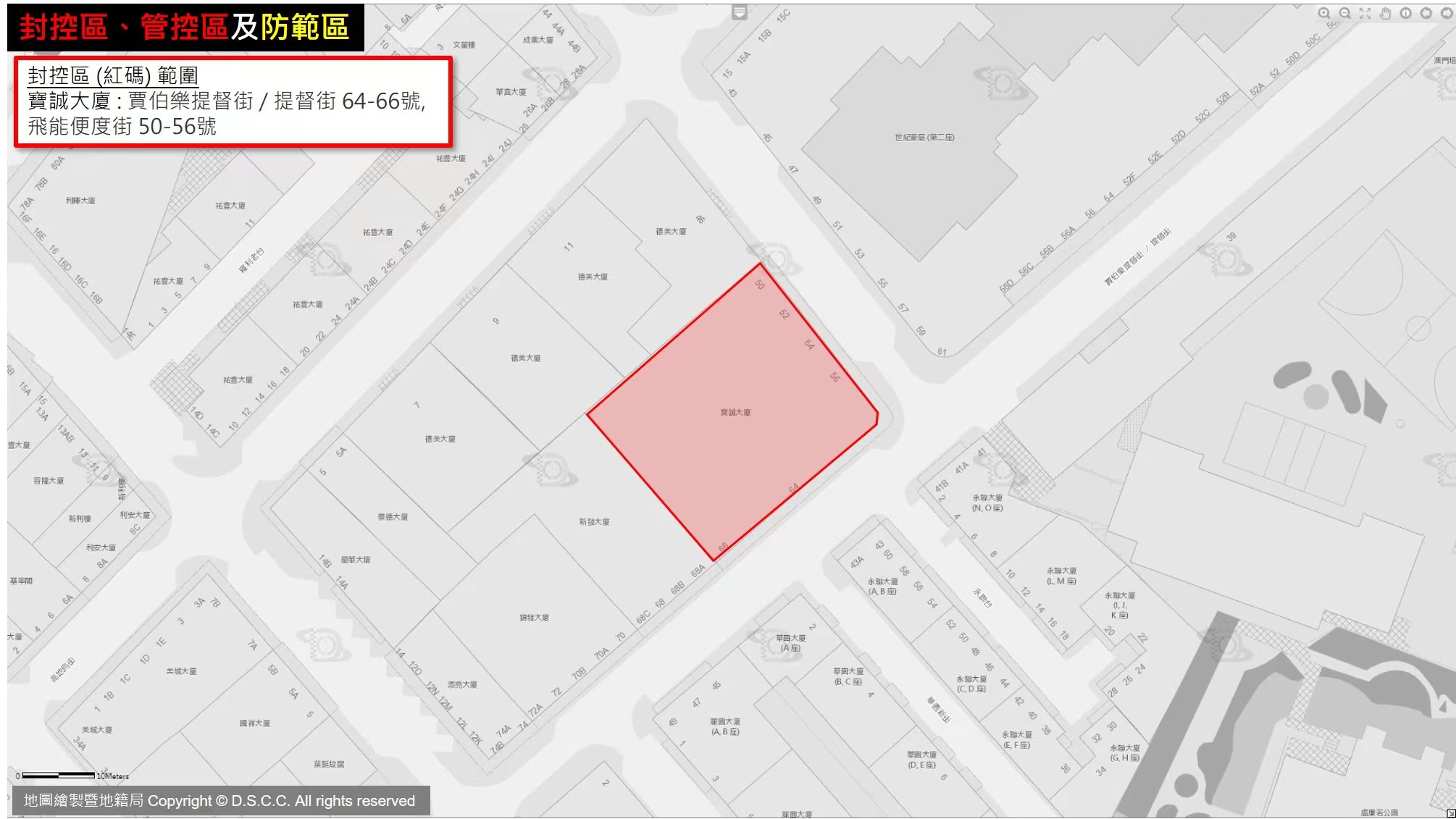 寶誠大廈: 賈伯樂提督街/提督街 64-66,飛能便度街 50-56 |