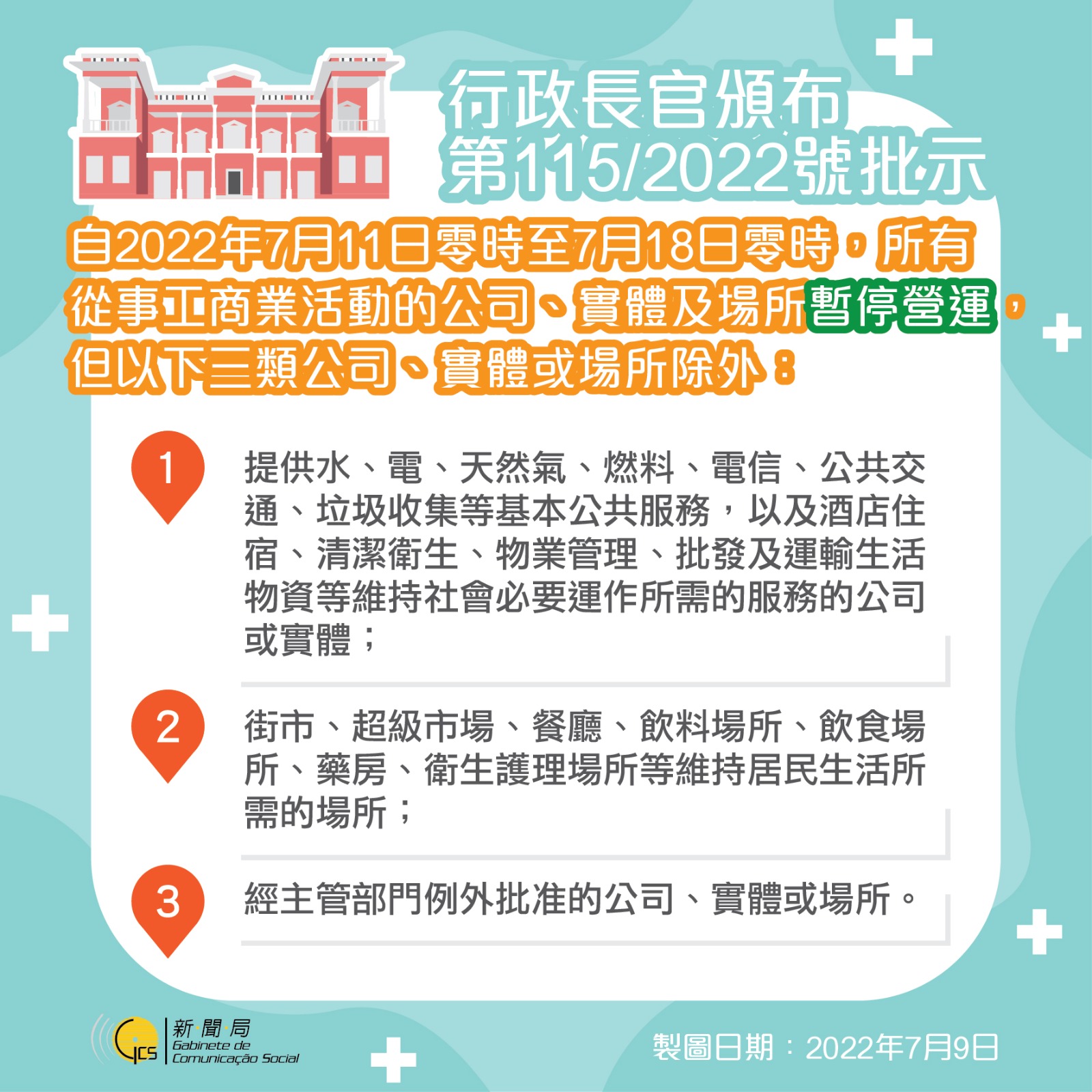 【圖文包】7月11日至18日暫停所有非維生必需的工商業活動