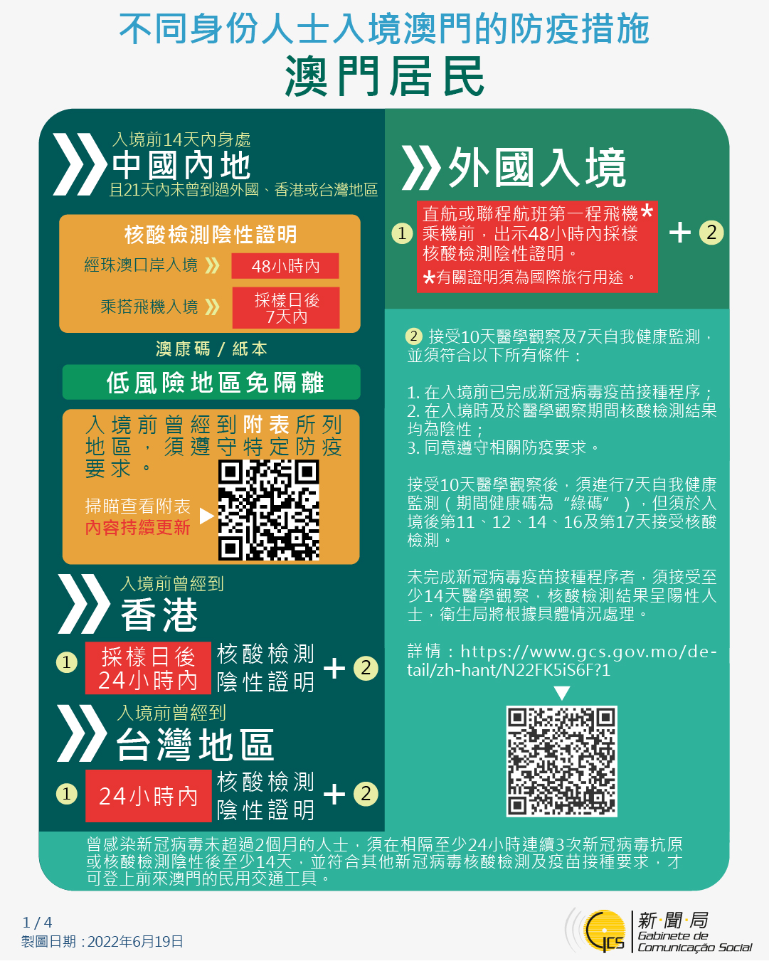 不同身份人士入境澳門的防疫措施