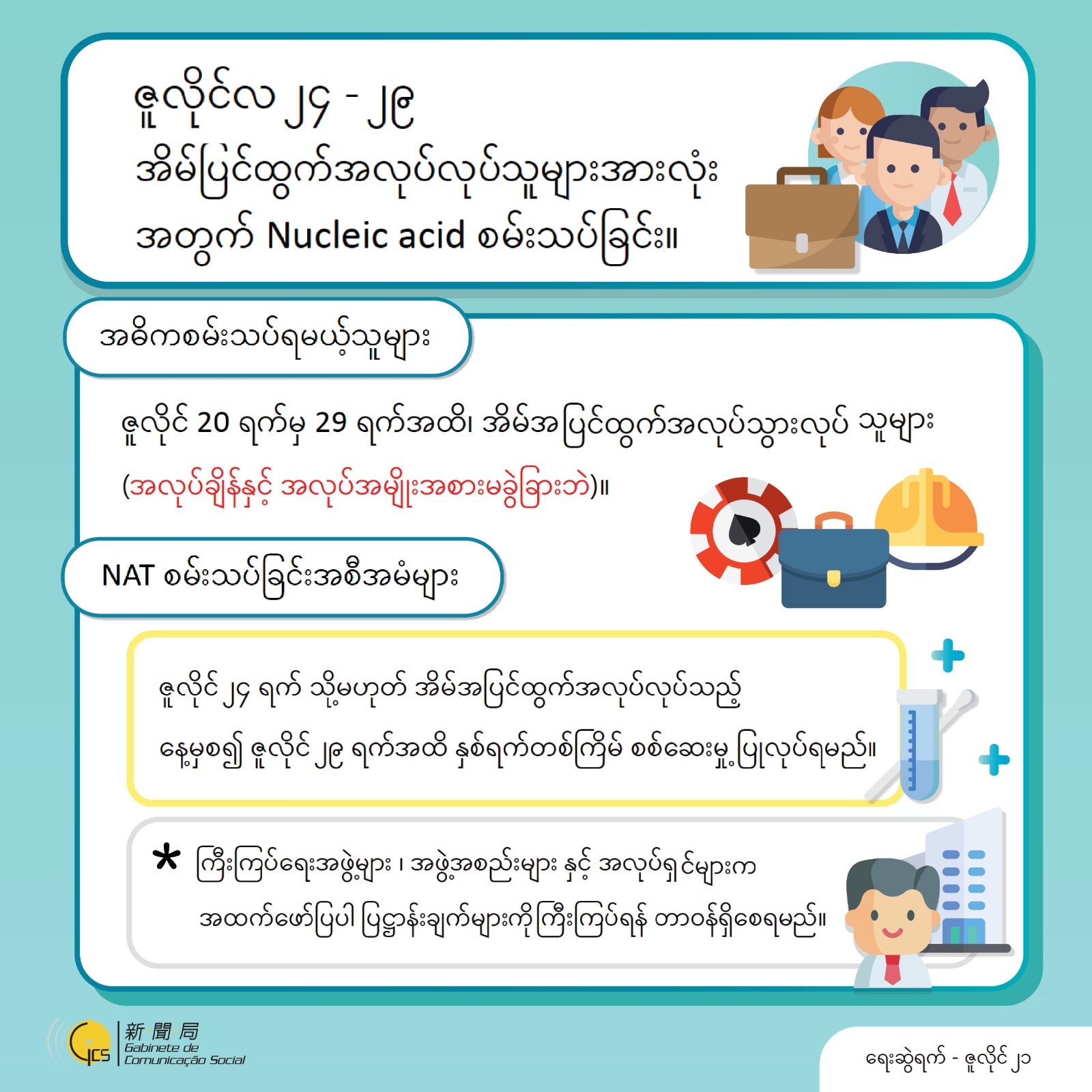 【圖文包】7月24日至29日離家工作人群核酸檢測(緬甸語)