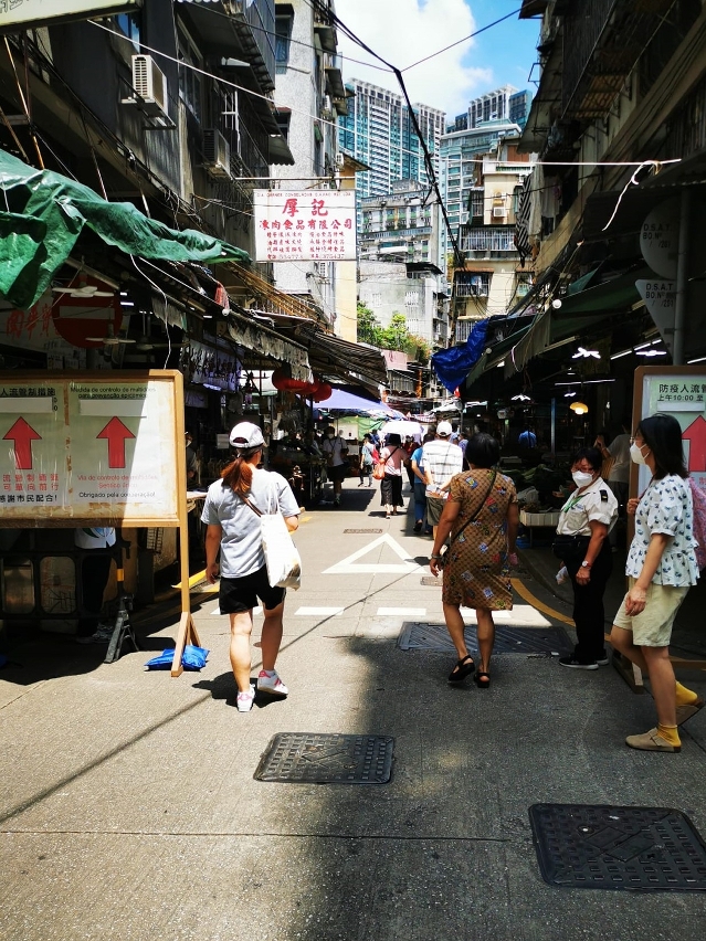 市政署亦持續評估各街市的實際情況採取人流管制措施,早前已分別於人流較多的沙梨頭街市、祐漢街市及下環街市外架設排隊動線,由工作人員指示市民有序進入街市,同時亦為長者及行動不便人士安排特別通道。