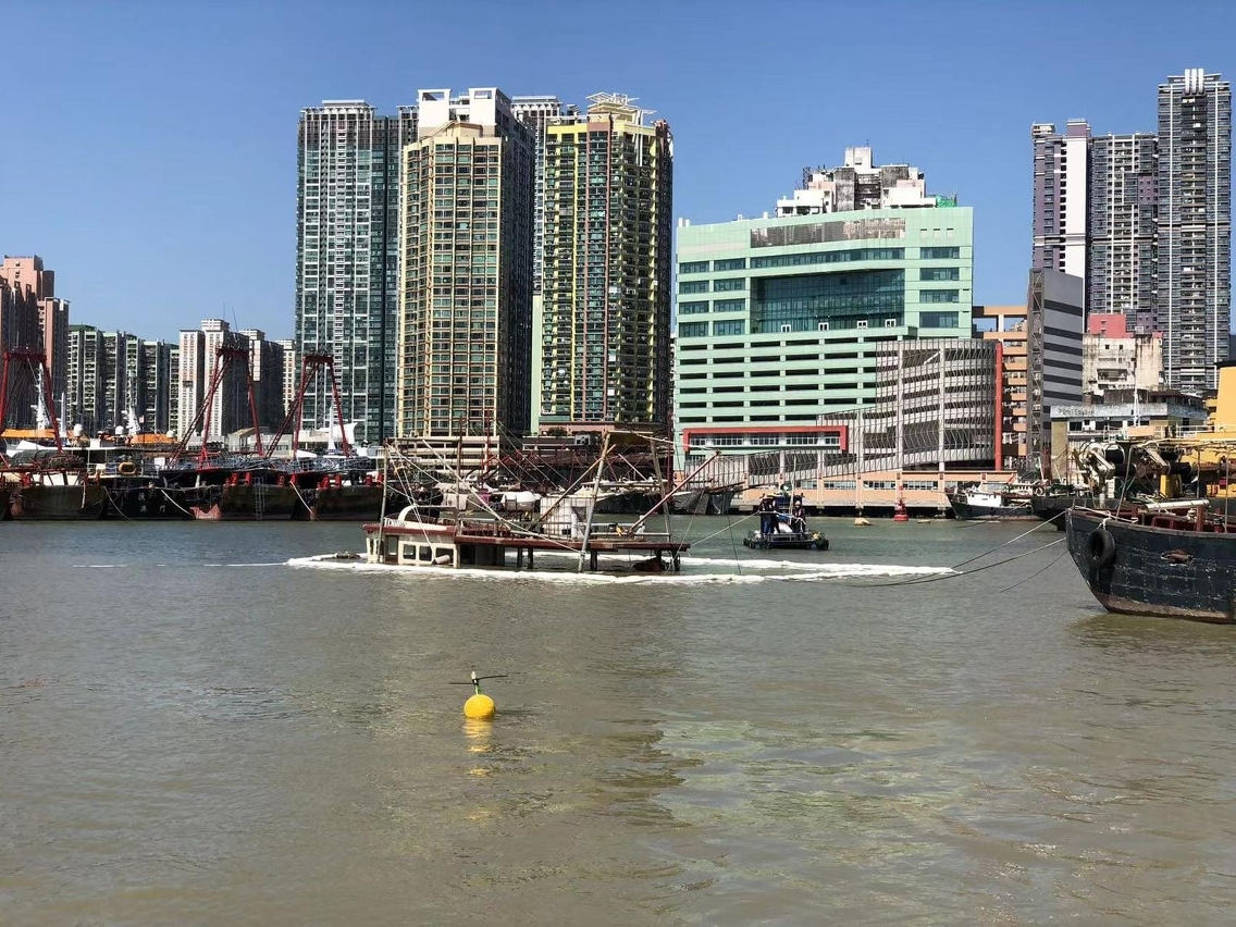 內港錨地日前有漁船入水傾側,相關船東今日(26日)進行漁船的起吊作業。海事及水務局在作業期間派船於現場戒備及提供協助,並跟進清理油污和掃瞄海床等善後工作。