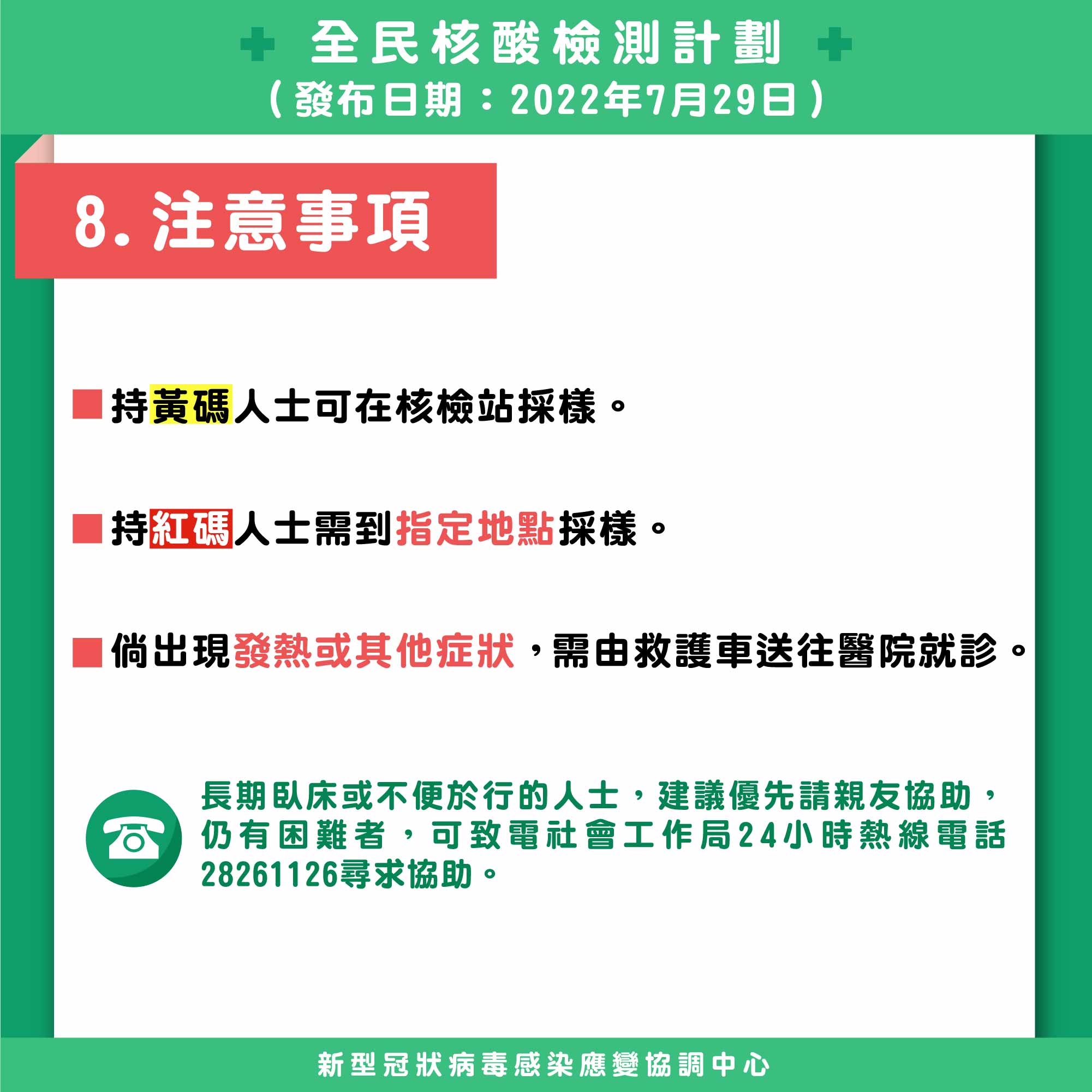 此外,黃碼人士、重點人群參與全民核檢,其核酸結果亦計算在衛生部門要求的核檢次數內,不用重複進行核檢。