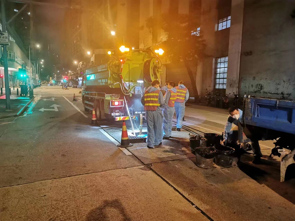 因應熱帶風暴將為本澳帶來不穩定天氣,市政署已加派人員檢查各區下水道、泵站及地下隧道的排水系統,加強疏通積水易發地點的渠道設施。期間,再清出數噸水泥漿塊及垃圾廢料,市政署呼籲市民、食肆勿將垃圾、油脂等傾倒在公共街道及渠道,建築地盤負責人更須監管地盤排污,不應把水泥漿排入公共下水道,造成渠道堵塞,引致水浸。