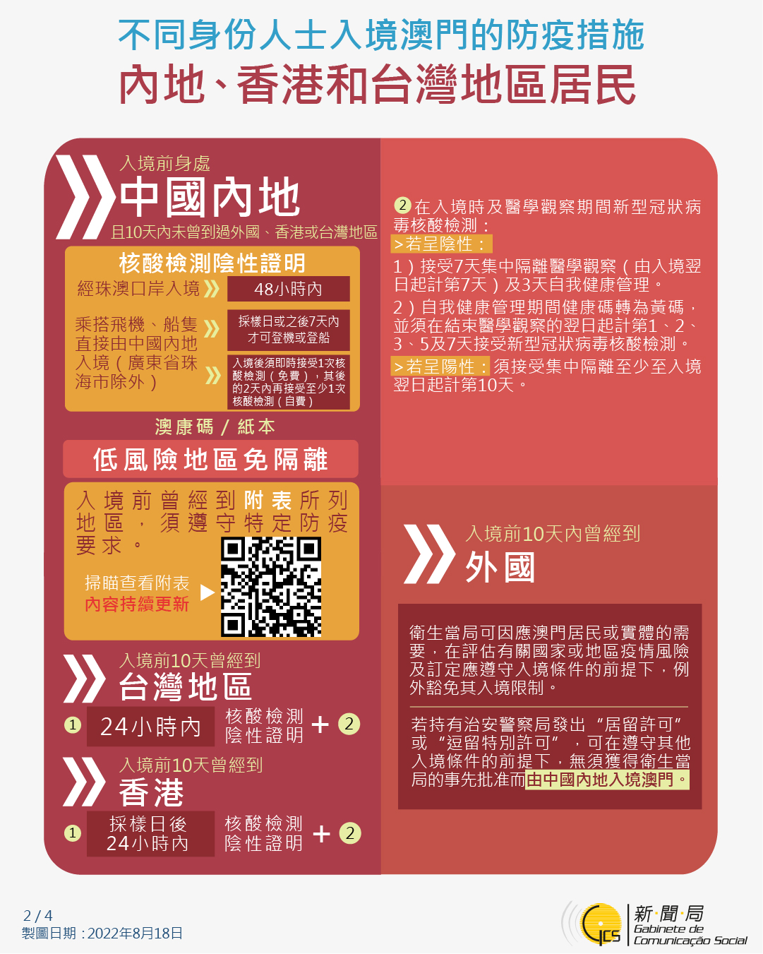 【圖文包】最新入境澳門的防疫措施 (2022/8/18)