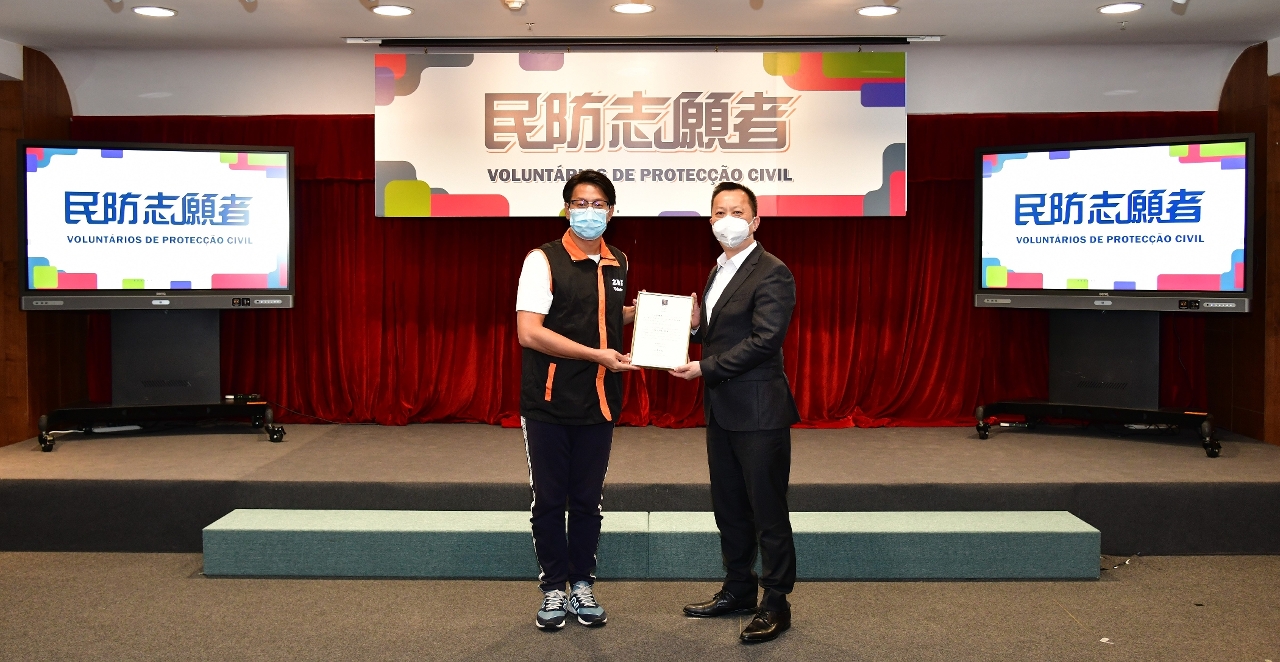 儀式上,保安司司長、聯合行動指揮官黃少澤、警察總局局長、輔助聯合行動指揮官梁文昌、澳門海關關長黃文忠分別向8位民防志願者頒授嘉獎狀,以表揚他們在過去一年的積極參與。隨後,三位獲嘉獎志願者代表亦分享成為民防志願者的感受和個人體驗。儀式後,新一批民防志願者參觀民防行動中心,實地了解中心的設施和運作情況。