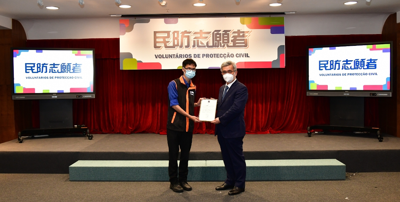 警察總局於今(20)日下午,在氹仔北安出入境事務大樓舉行“2022年民防志願者”迎新儀式,並嘉獎在過去一年積極參與民防活動的志願者。儀式由保安司司長、聯合行動指揮官黃少澤主持,警察總局局長、輔助聯合行動指揮官梁文昌、澳門海關關長黃文忠以及參與民防志願者培訓的部門領導、代表及民防志願者出席活動。