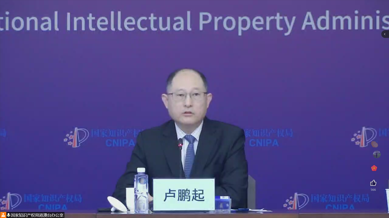 盧鵬起副局長致辭時表示,知識產權在支撐創新經濟、品牌經濟、特色經濟,助力高質量發展中發揮重要作用,內地與港澳特區應該共同攜手,讓知識產權工作服務國家發展大局,為經濟平穩健康發展注入新動能。