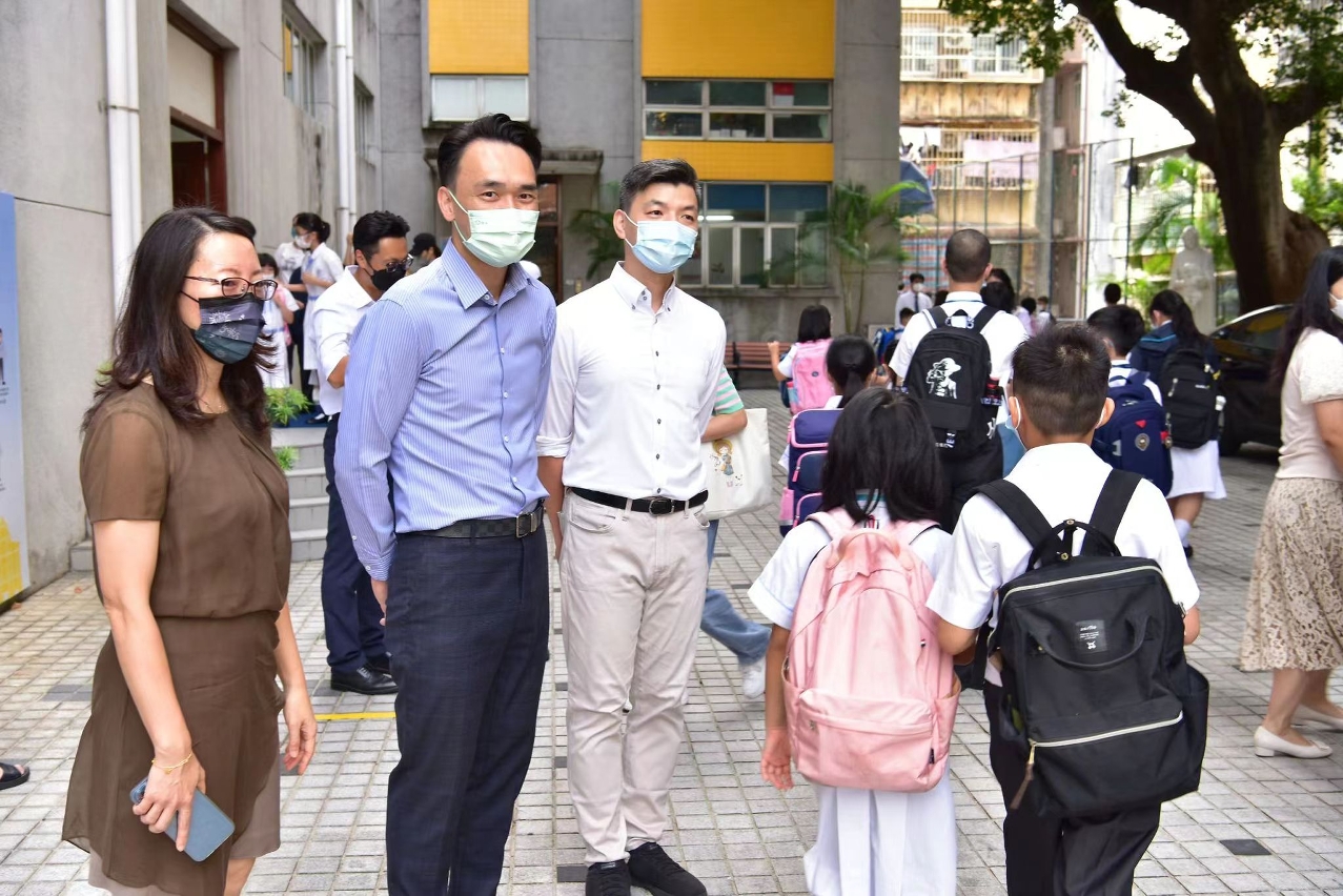 在9月1日及2日開學首兩天,教青局局長龔志明及其他領導、主管及人員分別到各所學校和出入境口岸實地了解學生上學情況;而各校亦配合防疫措施,做好學生返校工作。同時,交通事務局、治安警察局及教青局日前召開工作會議,共同協作實施新學年開學的交通安排,協調兩間巴士公司加開巴士班次,加派警員於學校附近疏導交通及維持秩序,而出入境口岸更開啟學生專道以減省跨境學生通關輪候時間。大部分家長和學生提早出門,選擇步行或乘搭公交出行,減輕開學時段的交通壓力;而學校亦安排教職員於校門外疏導人流,為所有進入校園的師生測量體溫,檢查健康碼和核酸檢測資料,使用搓手液清潔雙手,有序進入校園和課室,整個過程運作順暢。