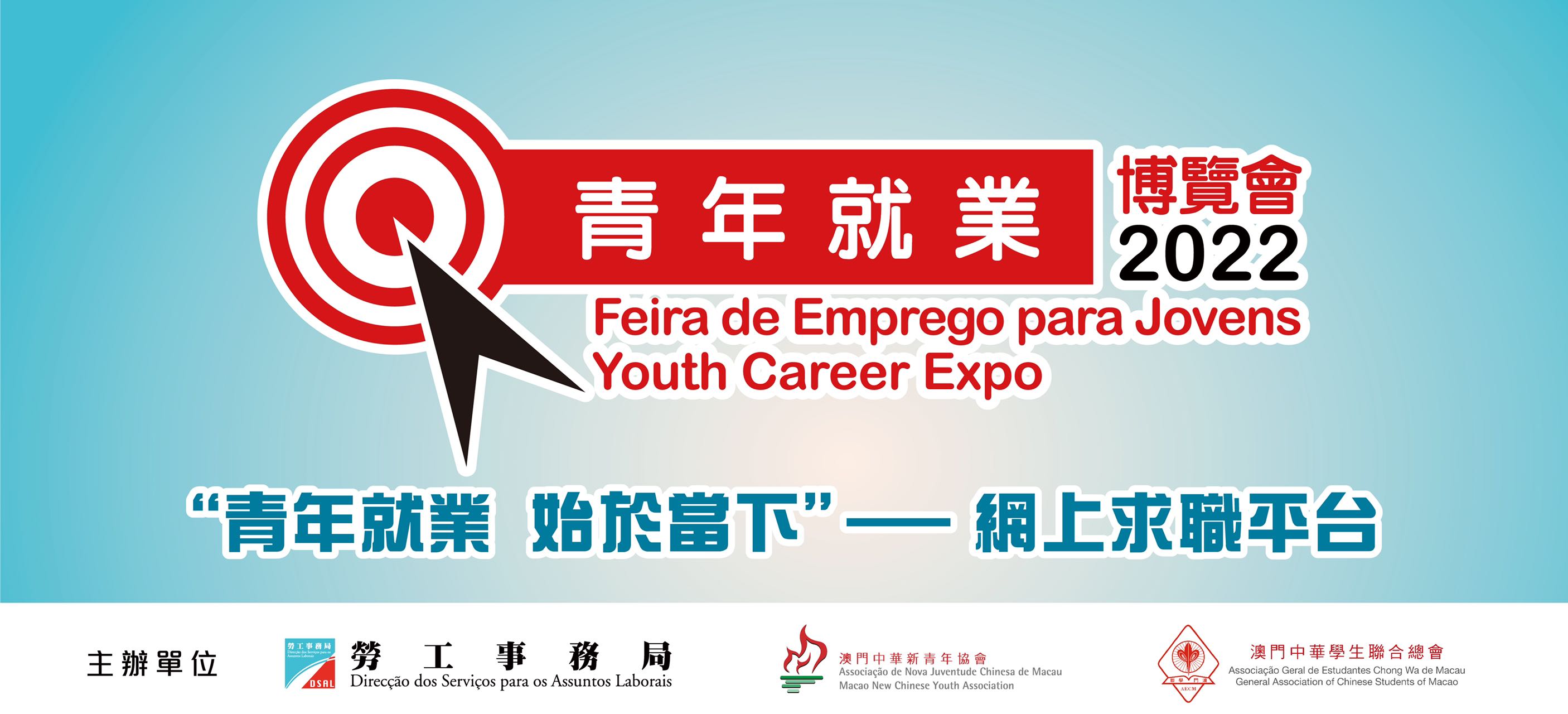 勞工事務局、澳門中華新青年協會及澳門中華學生聯合總會聯合定於本年10月8及9日假澳門威尼斯人會議廳聯合舉辦“青年就業博覽會2022”(下稱活動),主題為“青年就業,始於當下”。為協助求職青年盡快投身就業市場,今年活動以大型招聘會形式舉行,即日起開通網上求職平台。