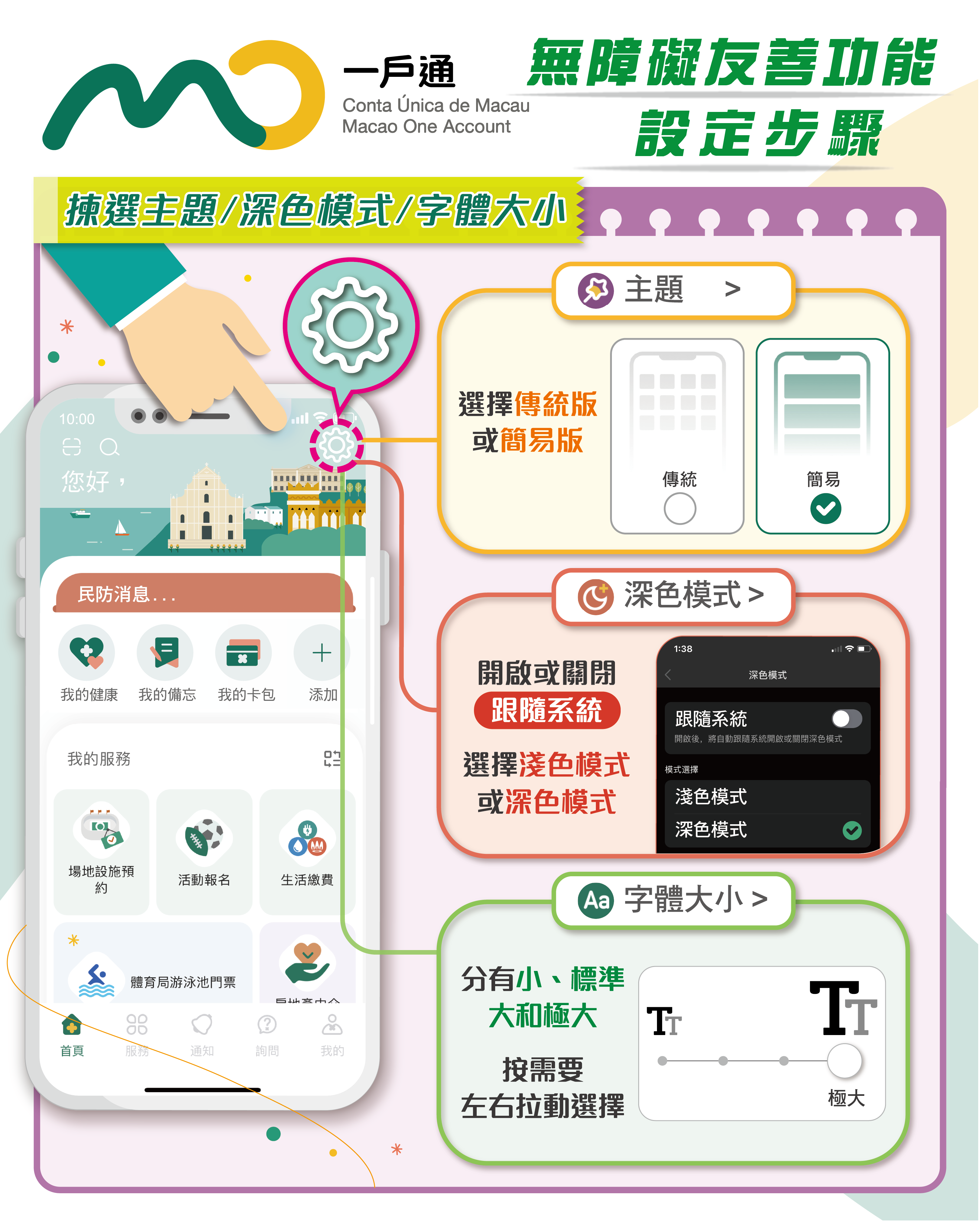 除此以外,“一戶通”為了解決視障人士在接收圖像信息上遇到的問題,已為圖像加上文字描述,令使用讀屏軟件的用戶也可以了解圖像的內容;配合“一戶通”其他無障礙功能,如文字和圖標放大、高對比度模式等,色弱人士、肢體殘障人士等用戶亦能夠按需要使用。
