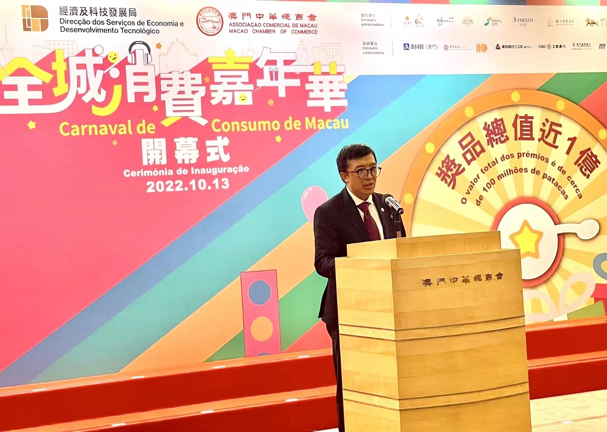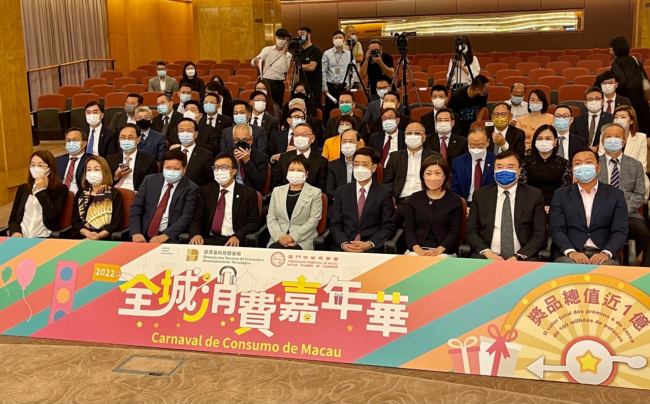 為進一步推動疫後經濟復甦,提振市場氛圍,經濟及科技發展局與澳門中華總商會合辦大型促進消費活動“2022年全城消費嘉年華",今(13)日在澳門中華總商會大廈四樓何賢先生紀念堂舉行開幕儀式。