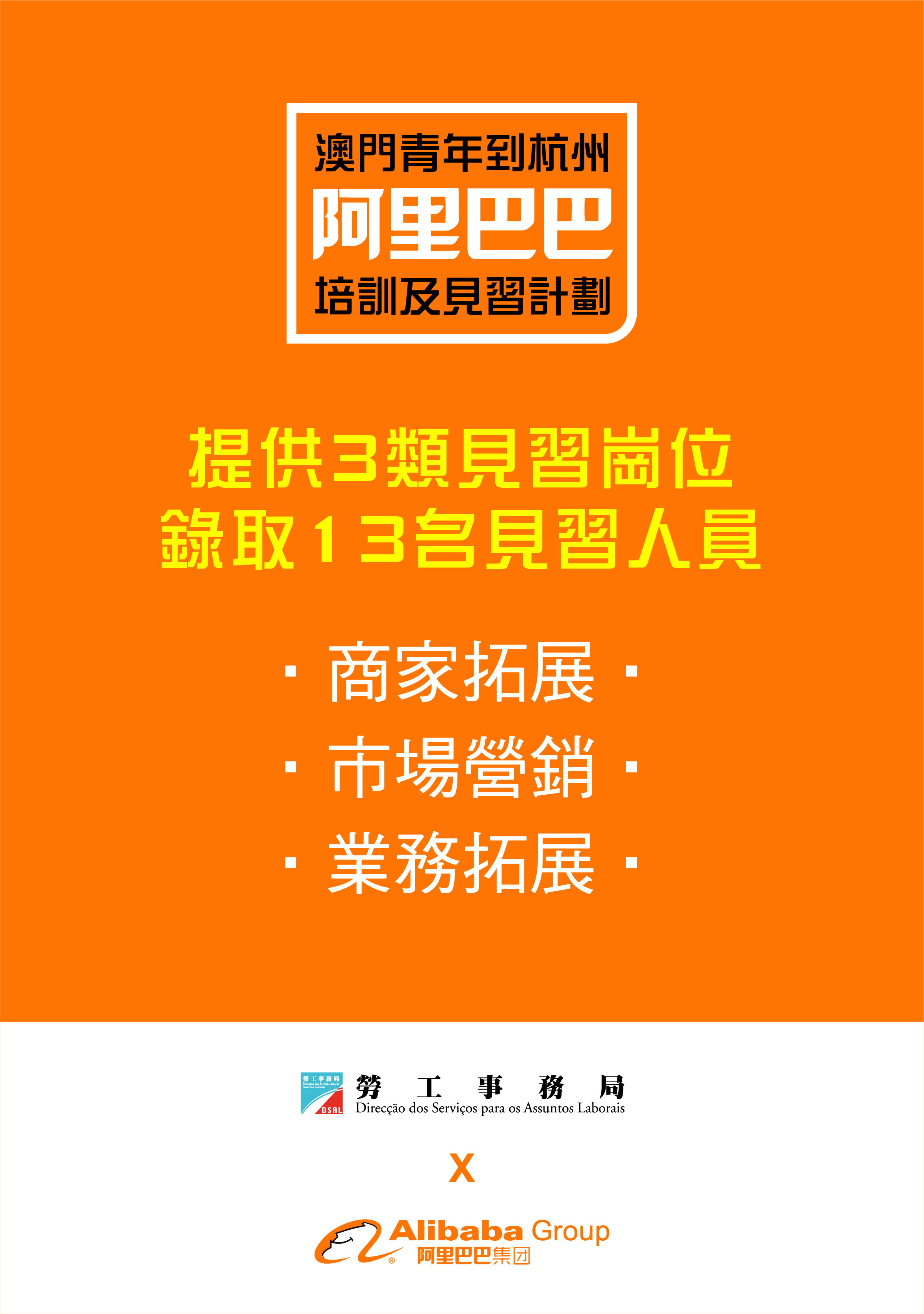 “澳門青年到杭州阿里巴巴培訓及見習計劃”專頁https://www.dsal.gov.mo/zh_tw/standard/employment_recruitment_intern_alibaba.html