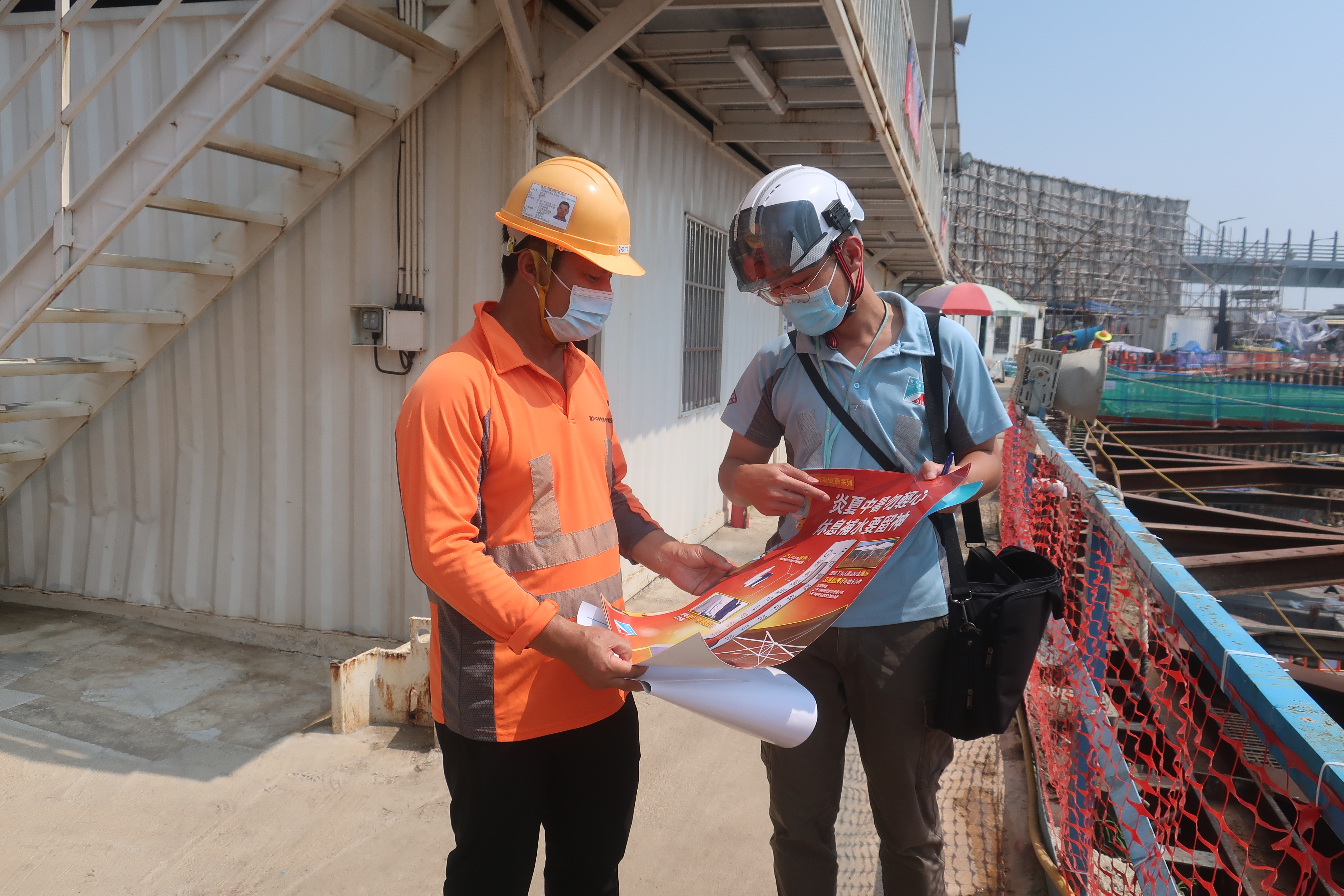 勞工局於巡查期間檢視全澳建築工地起重機械,包括天秤的檢驗和使用狀況,並提醒承造商須由專業人員對各類型起重機械進行定期檢驗,同時,局方人員亦提醒各工地持份者做好各項預防中暑的措施,並為工友進行職安健宣導和教育工作等。