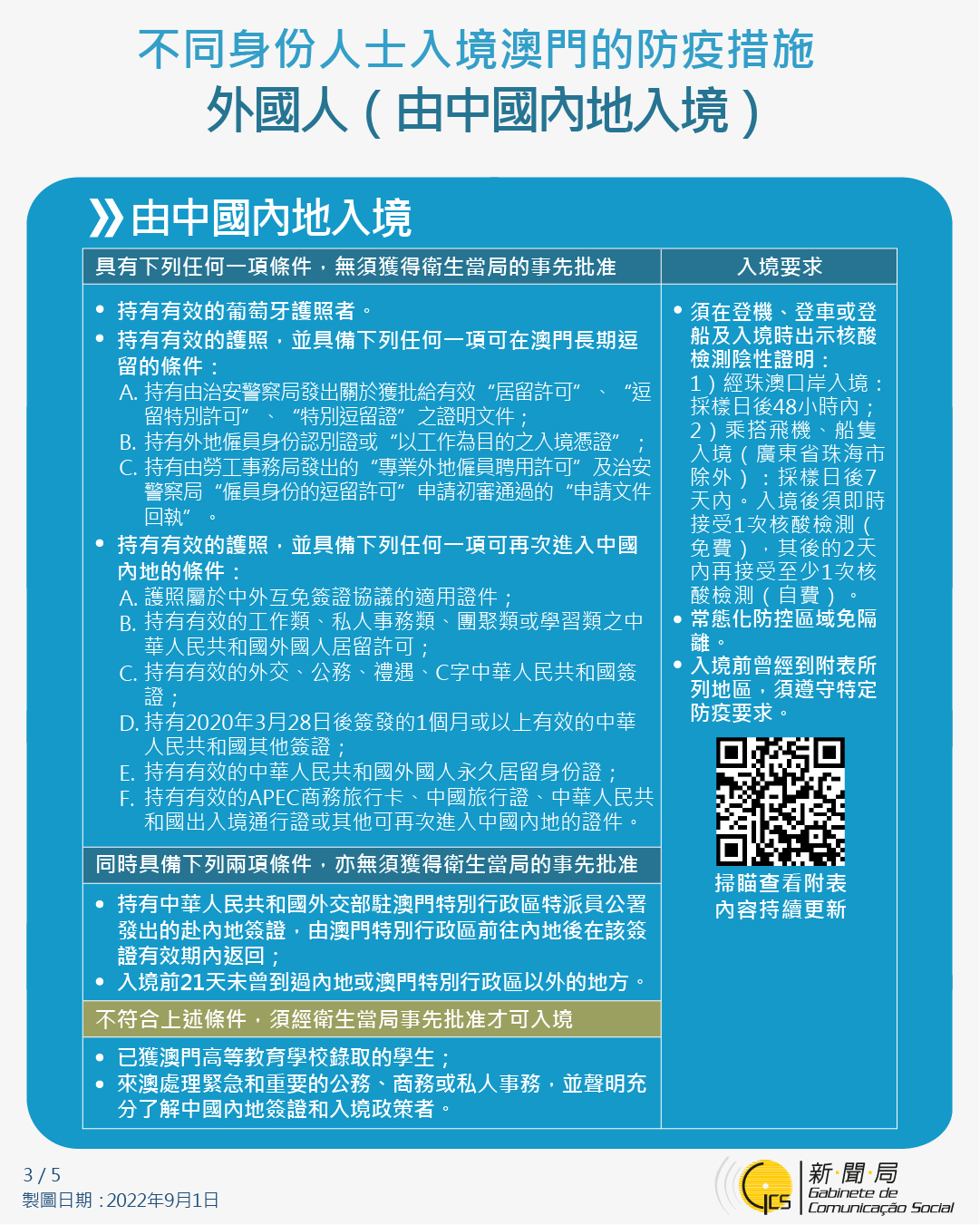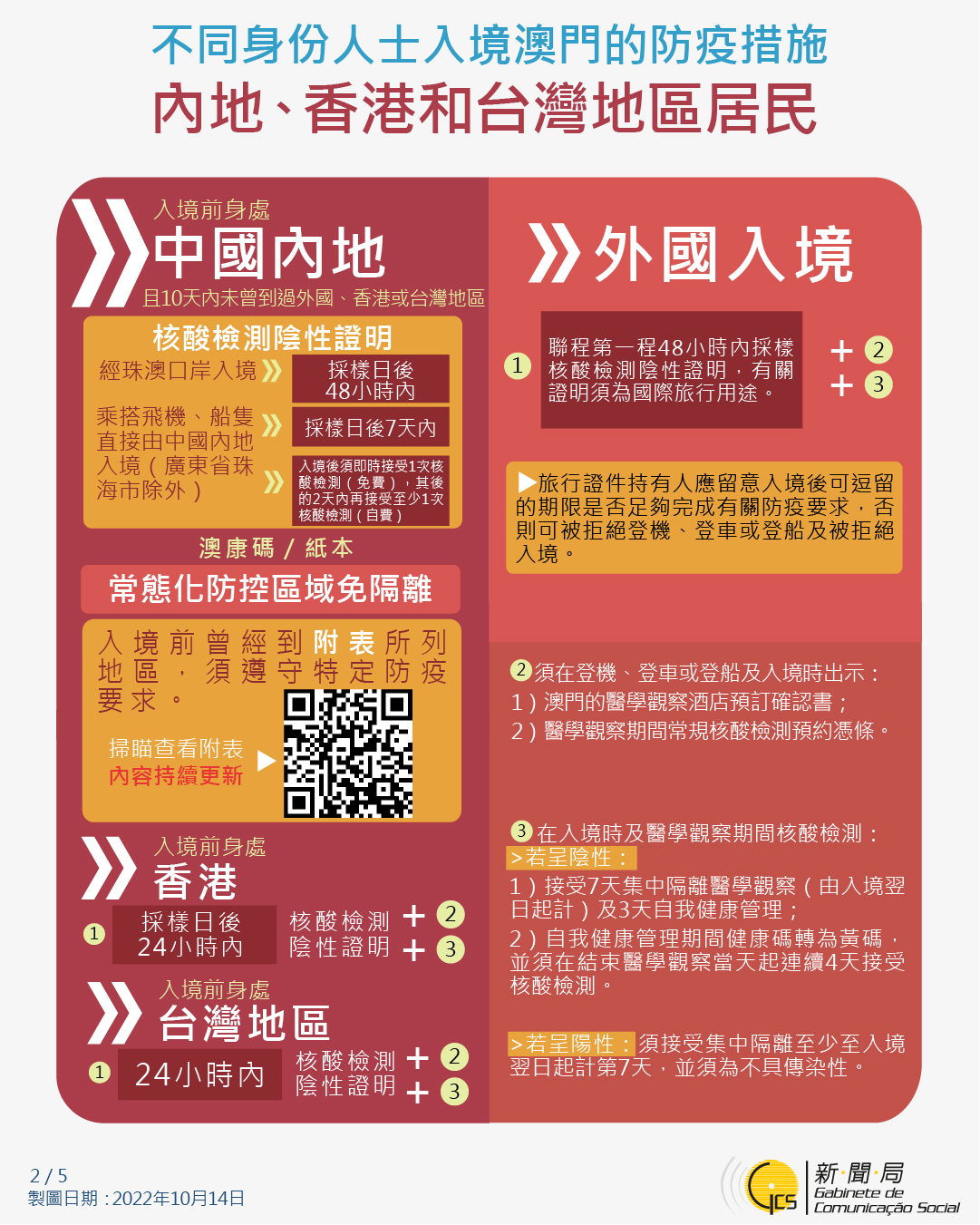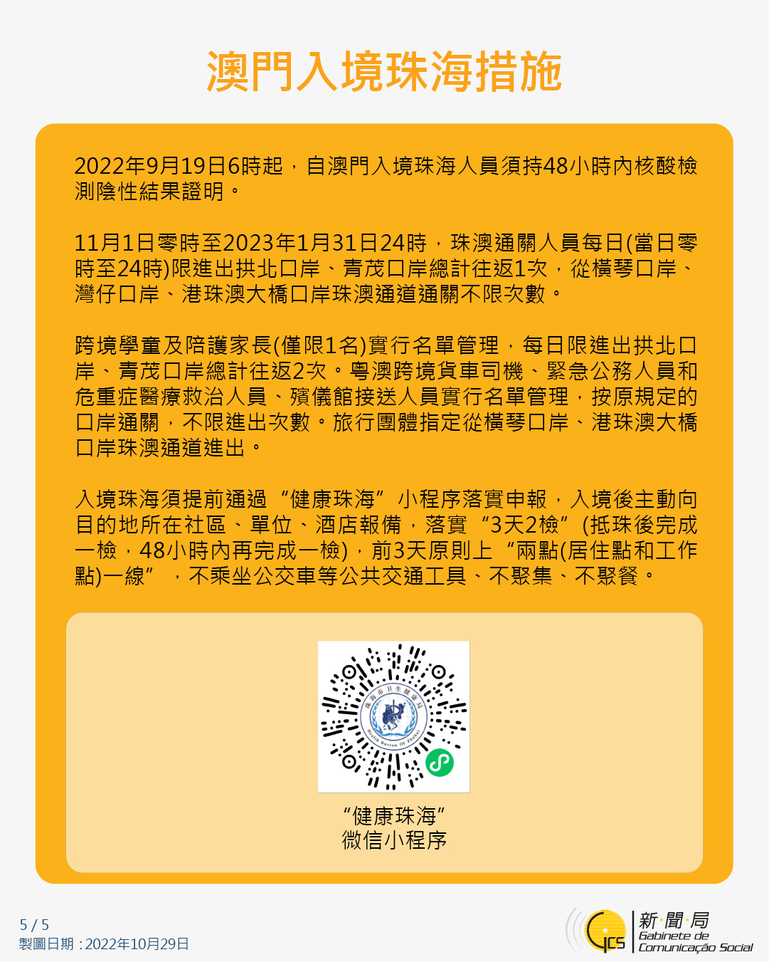 【圖文包】最新入境澳門的防疫措施 (2022/10/29)