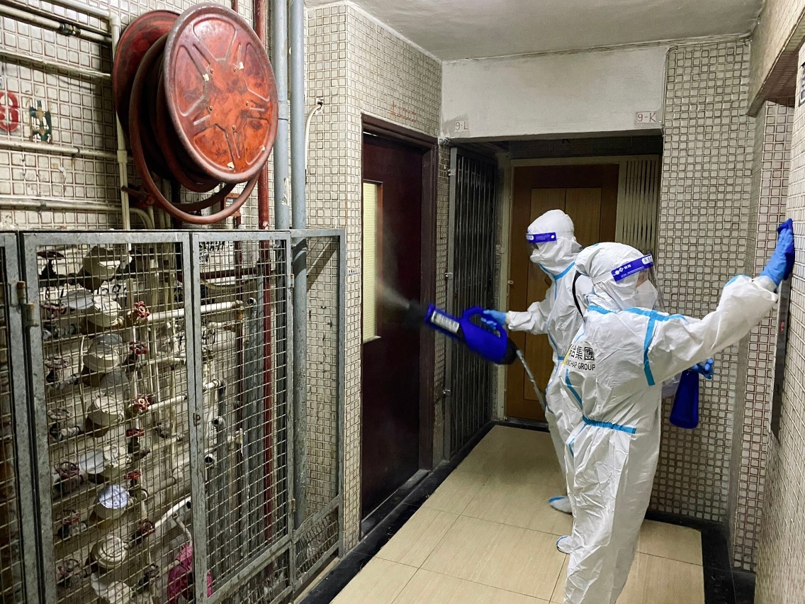 市政署對新增輸入性陽性病例居所大廈加強清潔消毒
