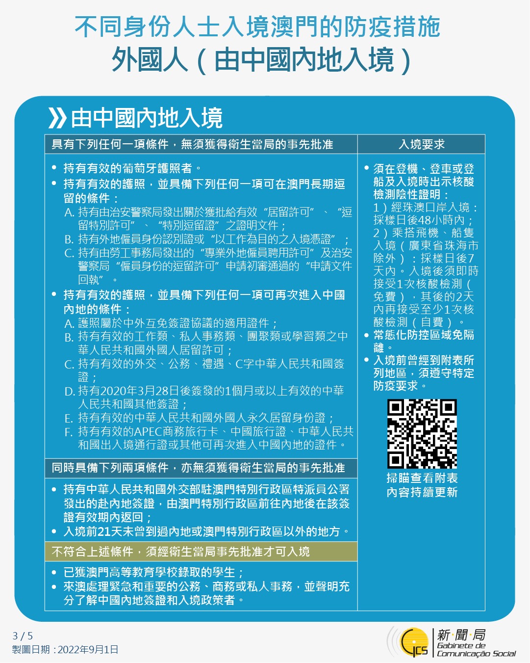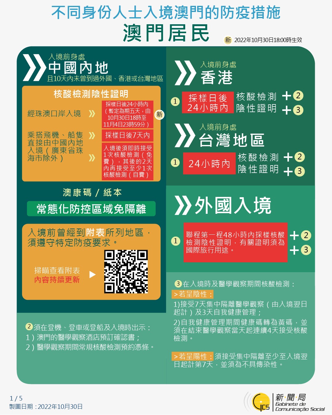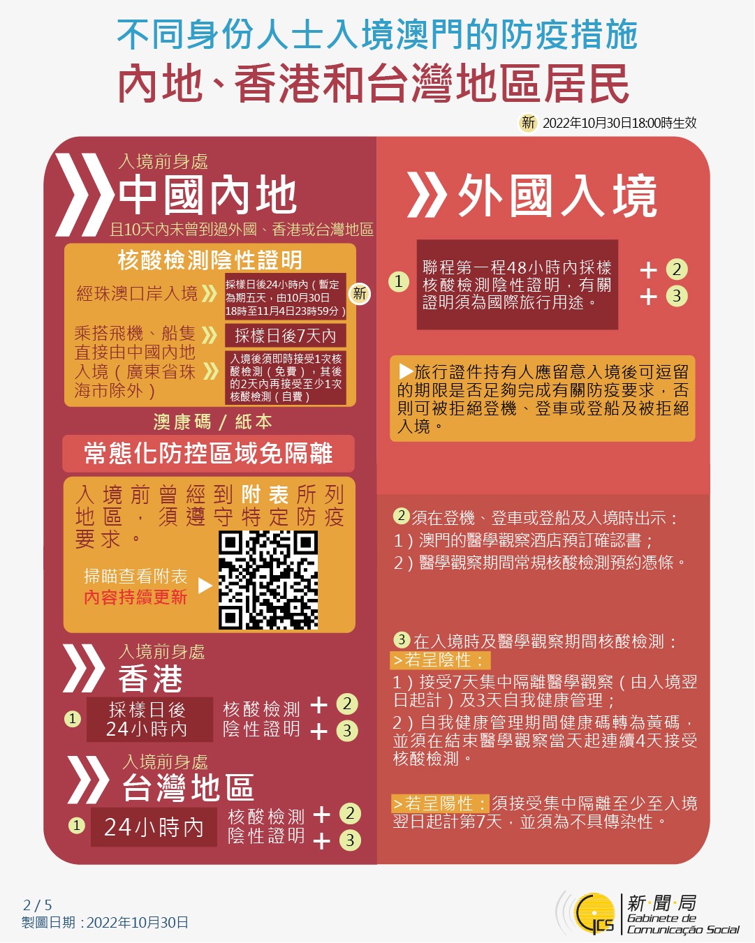 【圖文包】最新入境澳門的防疫措施 (2022/10/30)