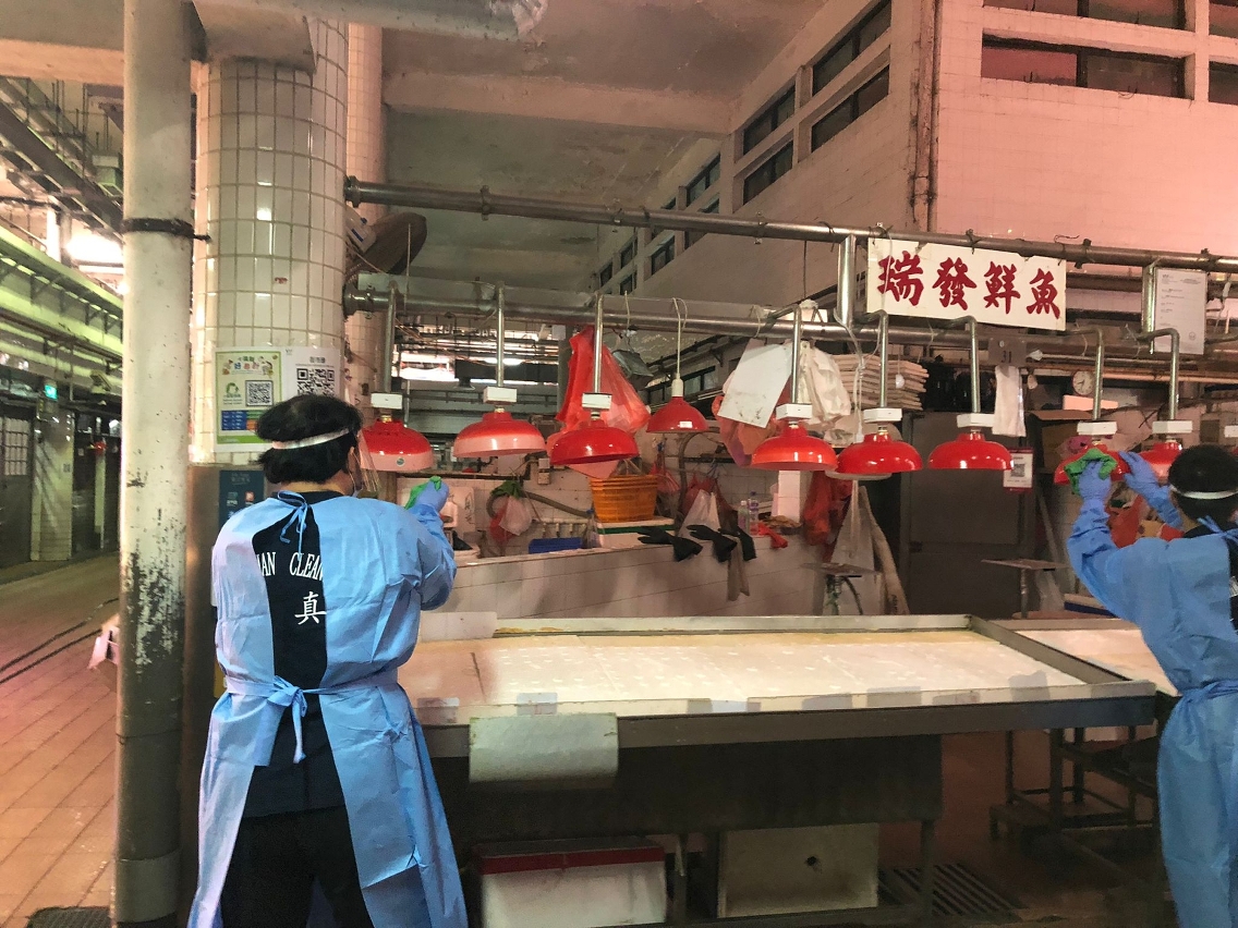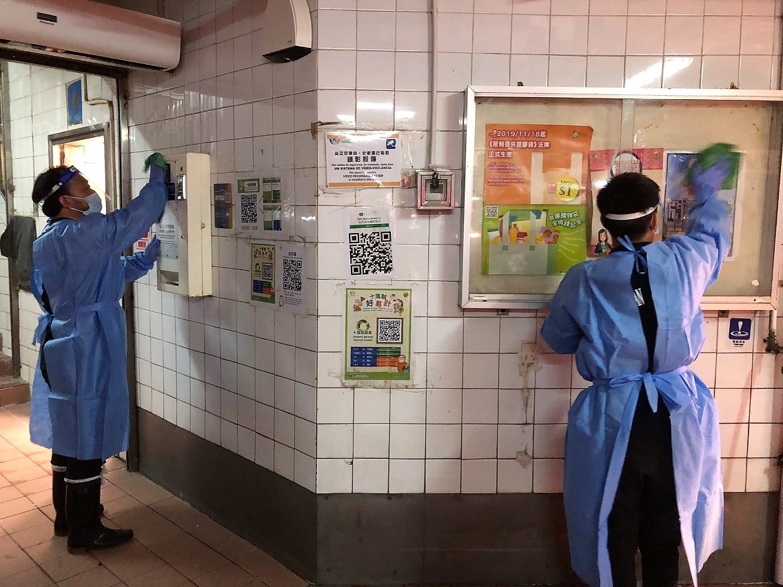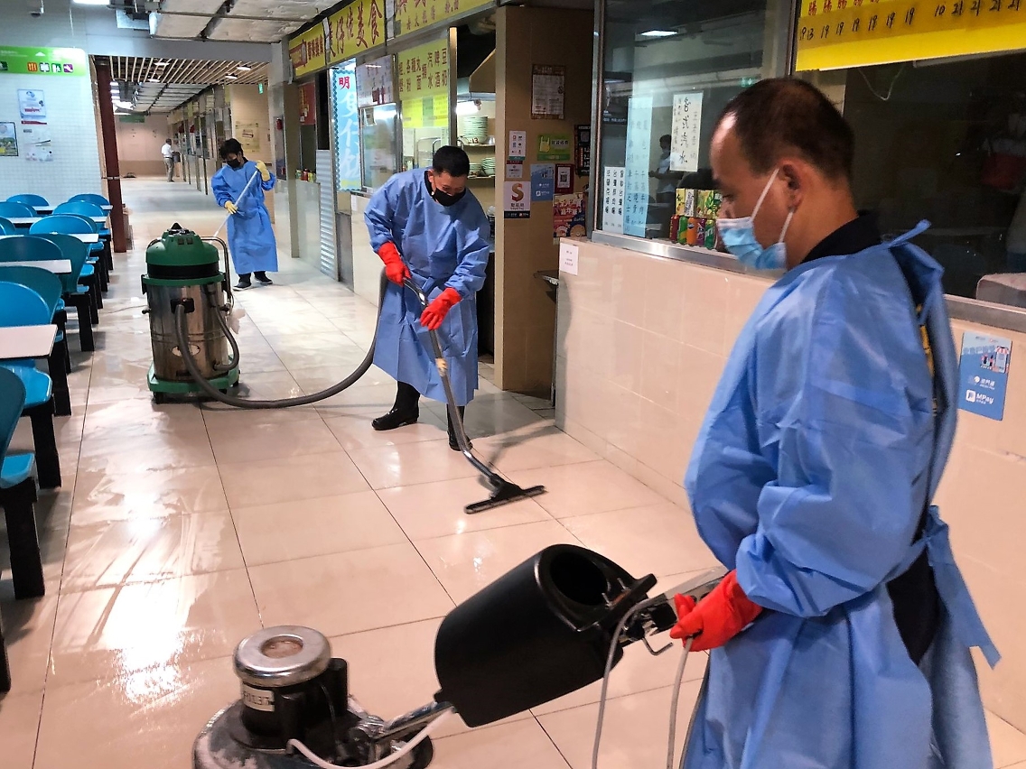 因應新型冠狀病毒感染的最新情況並配合防控工作,市政署已加強對祐漢街市各樓層及熟食中心等多個區域進行全面清潔消毒。