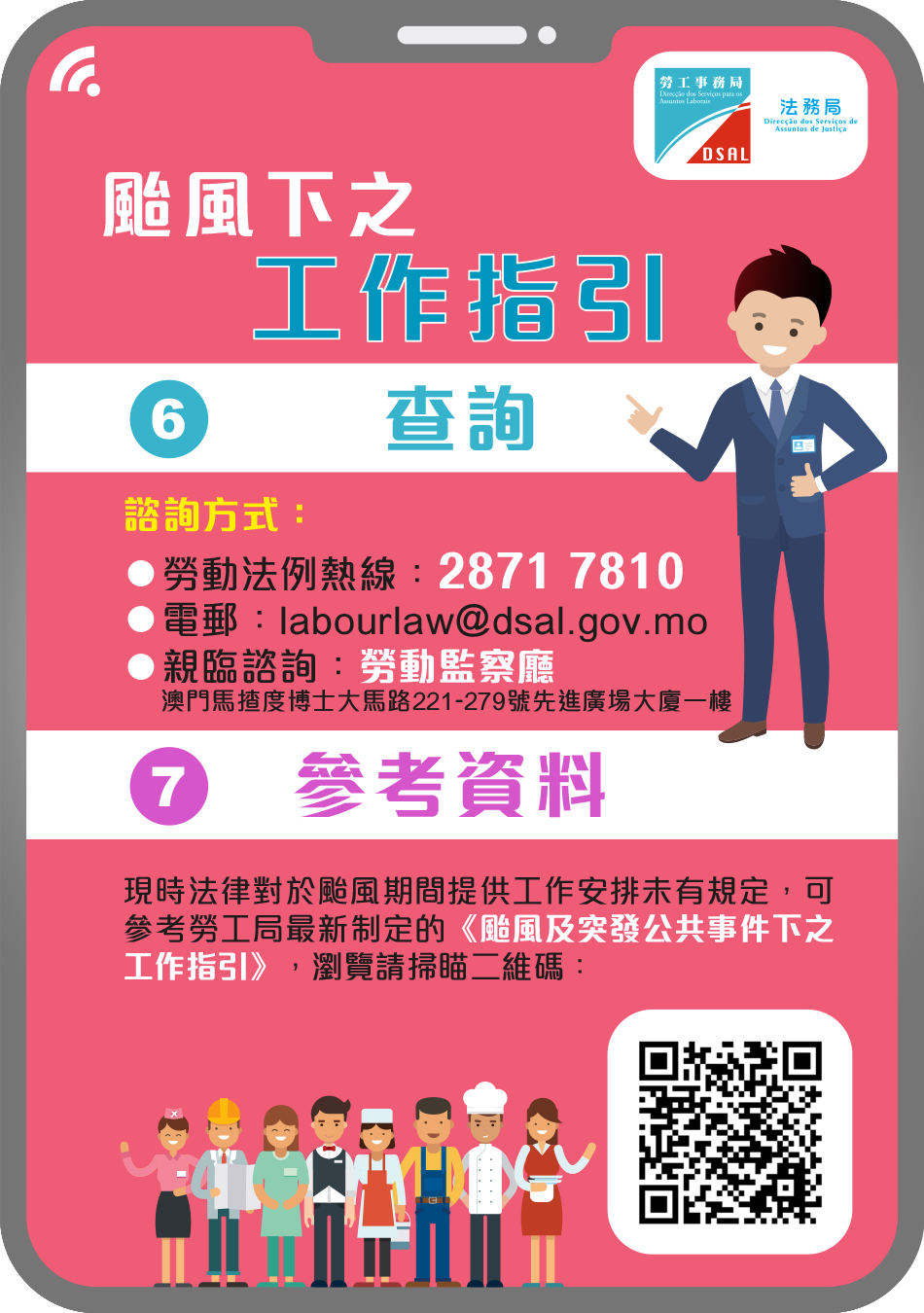 颱風下的工作指引圖文包( https://www.dsal.gov.mo/zh_tw/standard/download_graphic_laborproblem_typhoon1.html )