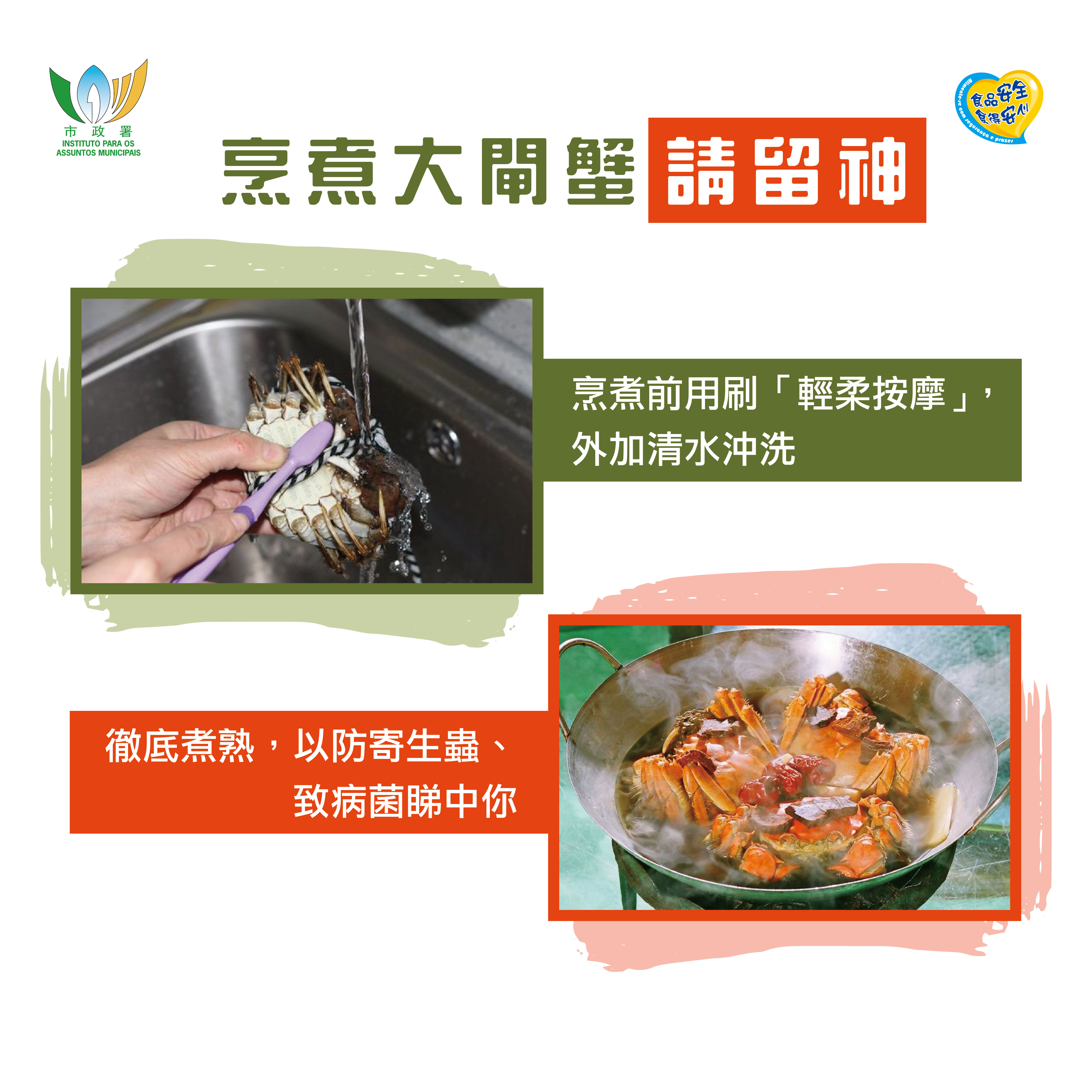 因應市民秋冬飲食習慣,市政署設立“秋冬季節食品安全”專頁,提供季節性食安提示,當中包括進食大閘蟹的相關食安科普資訊。市民可登入食安網 www.foodsafety.gov.mo,或於微信平台搜尋“市政署食品安全資訊”,即可關注及追蹤最新食安動態。