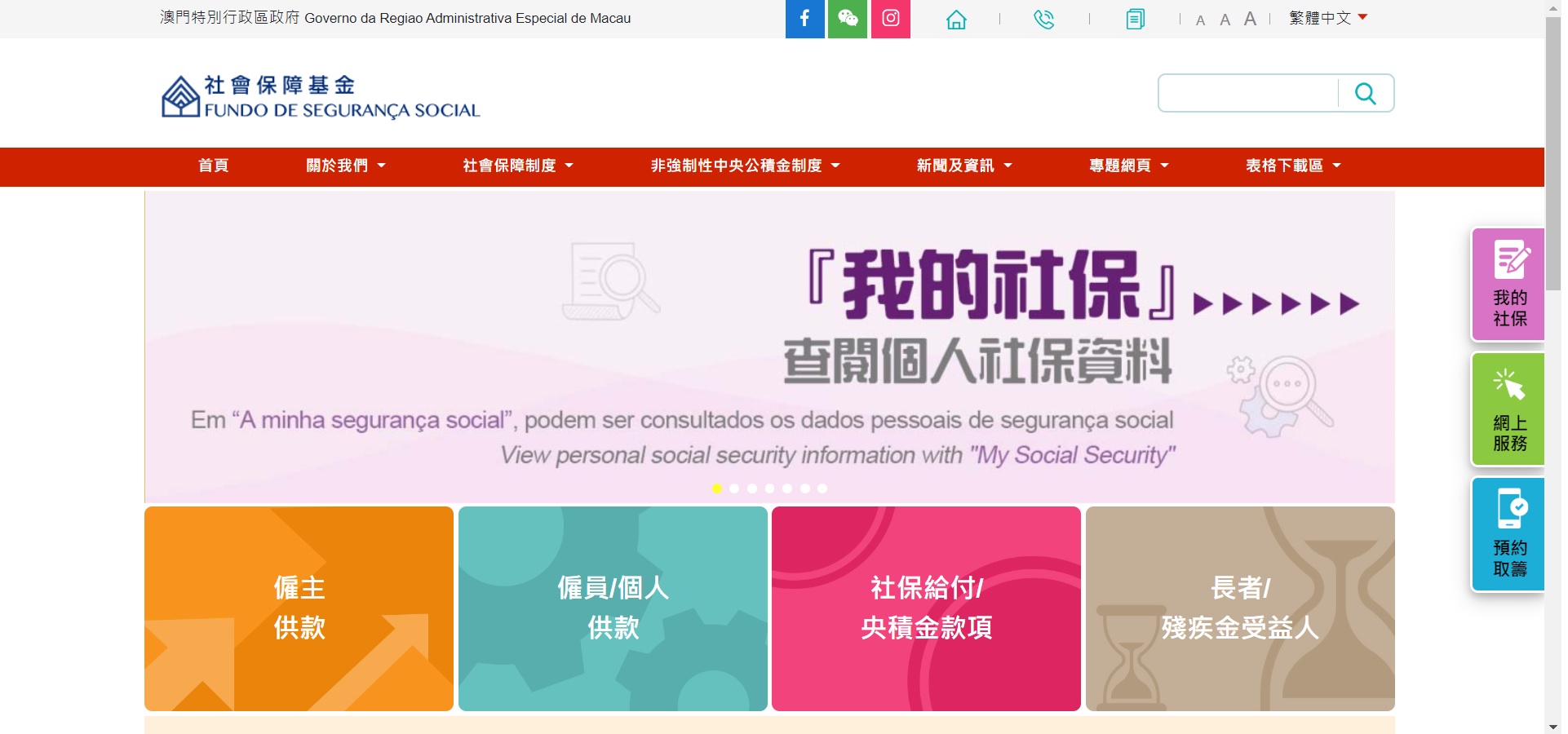 為切合社會發展、進一步便利居民掌握社保資訊,社會保障基金全面更新官方網站(www.fss.gov.mo),重點整合網上查詢服務及推廣電子化辦理服務功能,藉以提升服務效率。
