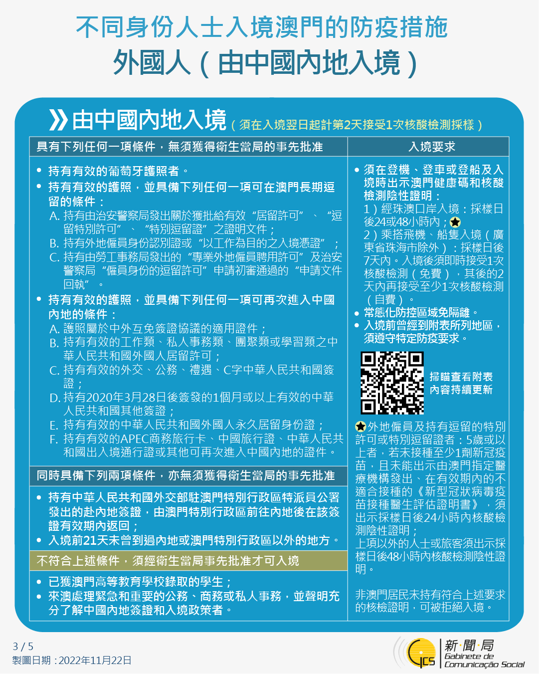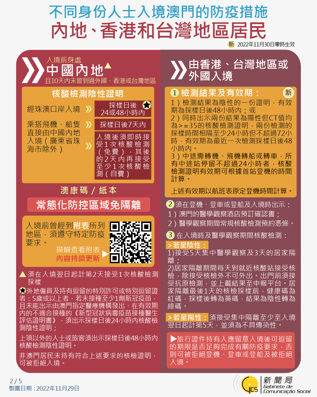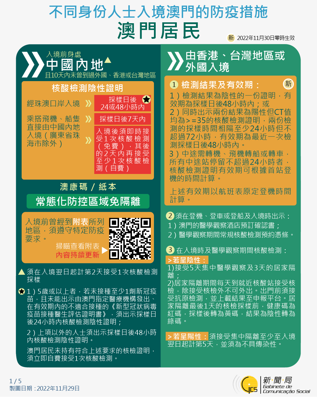 【圖文包】最新入境澳門的防疫措施 (2022/11/29)