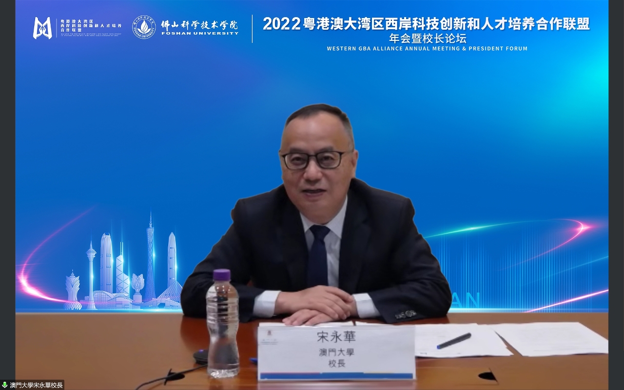 年會上,佛山科學技術學院黨委書記駱少明,中共佛山市委台港澳工作辦公室主任盤艷,聯盟理事長、澳大校長宋永華先後致辭。宋永華表示,建盟四周年之際,各成員單位在充滿挑戰和機遇的環境下砥礪同行,攜手創造了衆多優秀的工作成果。展望未來,聯盟成員應繼續秉承“促科創、育人才,聯西岸、建灣區”的理念,積極響應《粵港澳大灣區發展規劃綱要》及《橫琴粵澳深度合作區建設總體方案》等國家發展戰略,共建大灣區西岸創新科技走廊和拔尖人才培養基地,打造區域協同創新高質量發展典範。