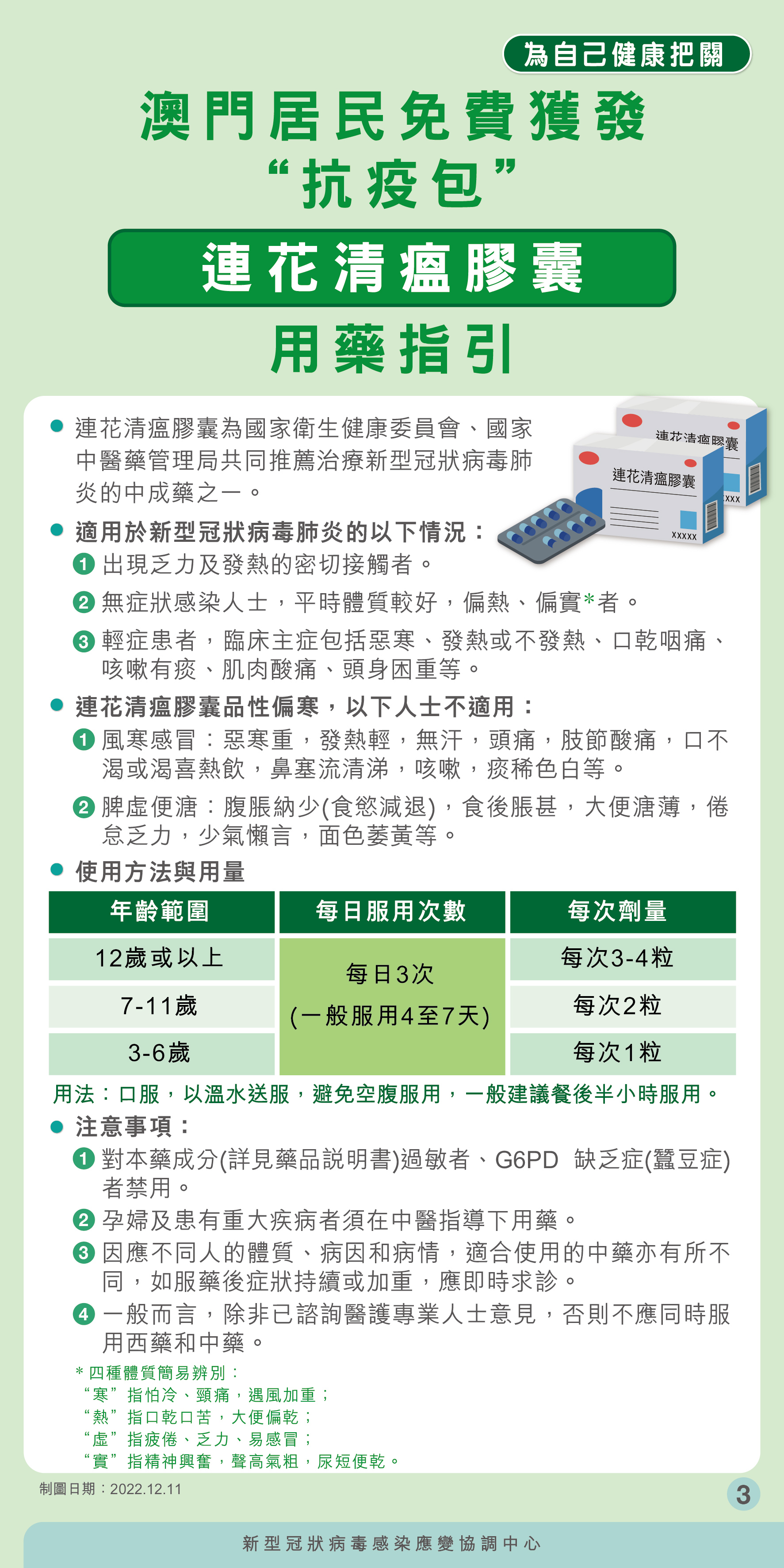為應對本澳內外疫情變化,新型冠狀病毒感染應變協調中心(下稱應變協調中心)向全澳居民免費派發“抗疫包”,以備不時之需,並按不同年齡層的實際需求和適用範圍分四個種類。