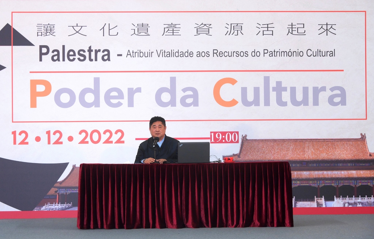 由澳門特別行政區政府社會文化司主辦、文化局承辦、澳門理工大學協辦的“文化的力量——讓文化遺產資源活起來”講座,今日(12月12日)在澳門理工大學體育館舉行,講座由故宮博物院原院長單霽翔博士講解故宮文物及其與現實生活的聯繫,探討以創新形式把文化遺產資源融入生活,資料珍貴豐富,講解活潑生動,深獲聽眾好評,講座為本澳文化遺產的保護與傳承、與文化創意的融合與利用帶來啟發。