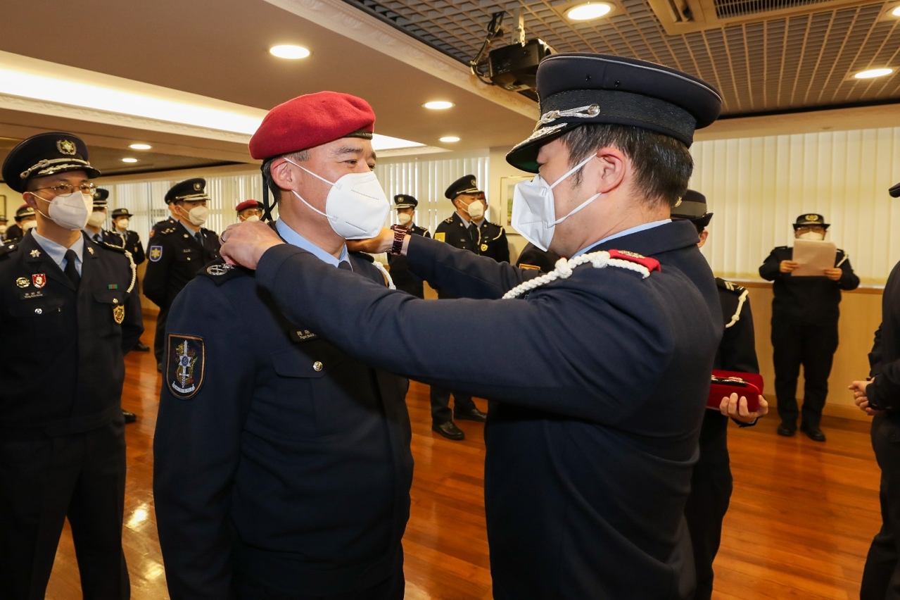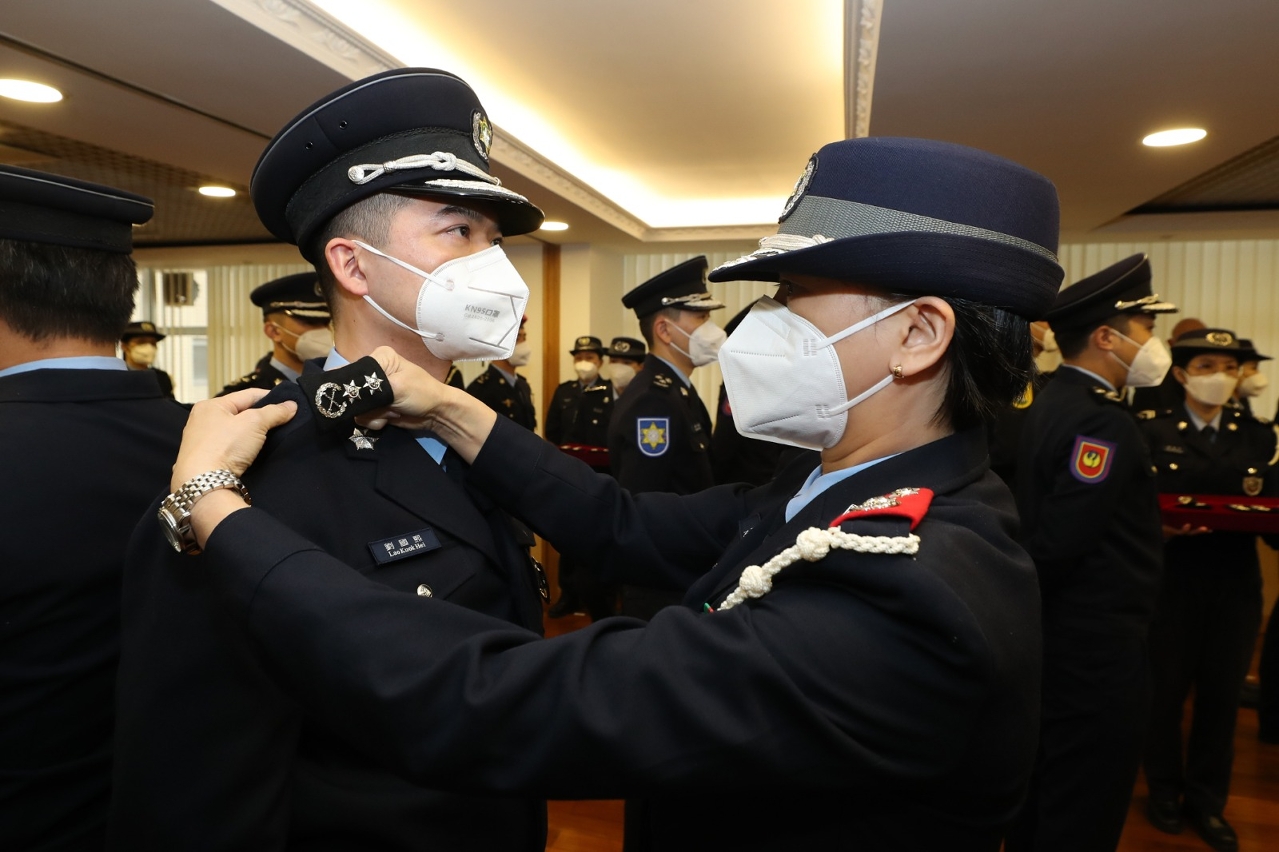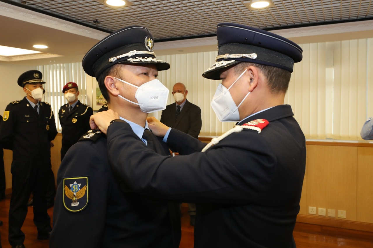 1月3日下午,在治安警察局總部內舉行了警務總長、副警務總長及警司晉升儀式。儀式由吳錦華局長主持,黃偉鴻副局長、梁慶康副局長、伍素萍副局長及各部門主管亦出席儀式,為晉升同僚致賀。