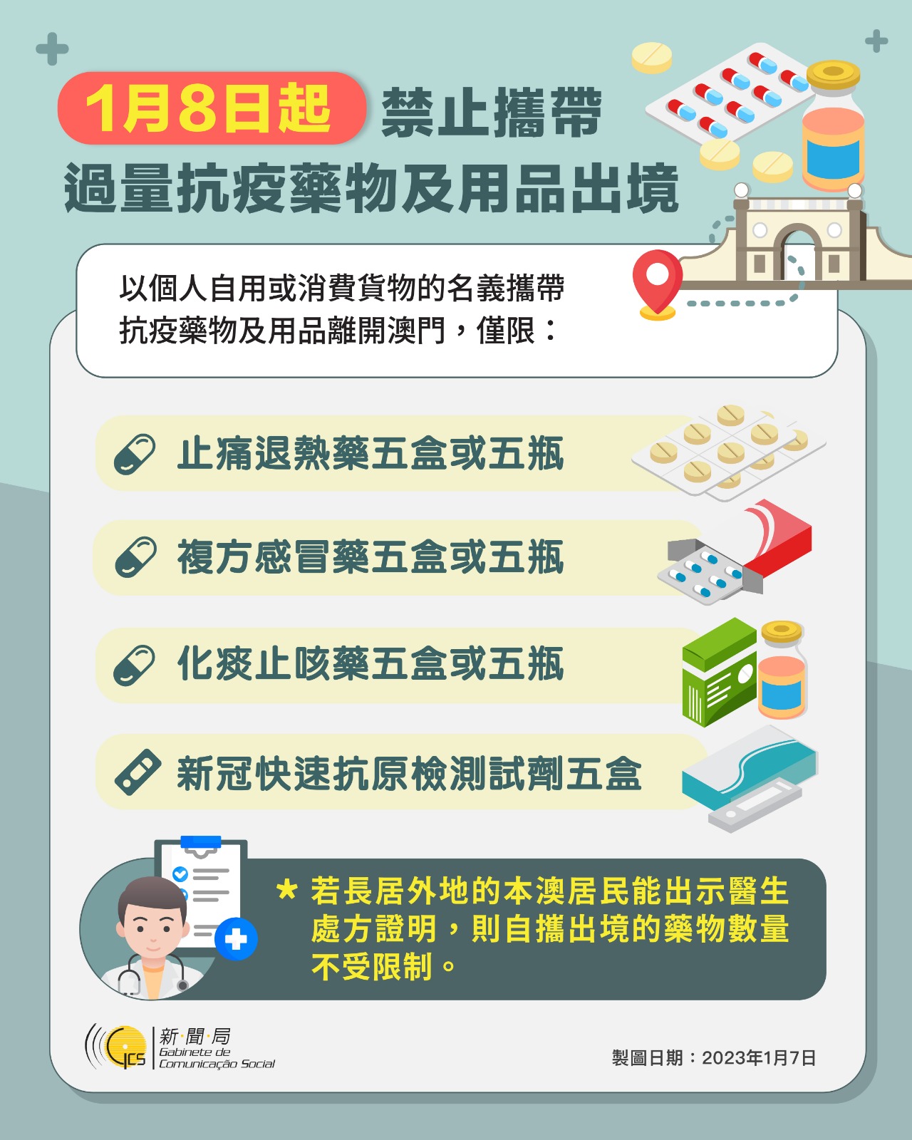 1月8日起禁止攜帶過量抗疫藥物及用品出境