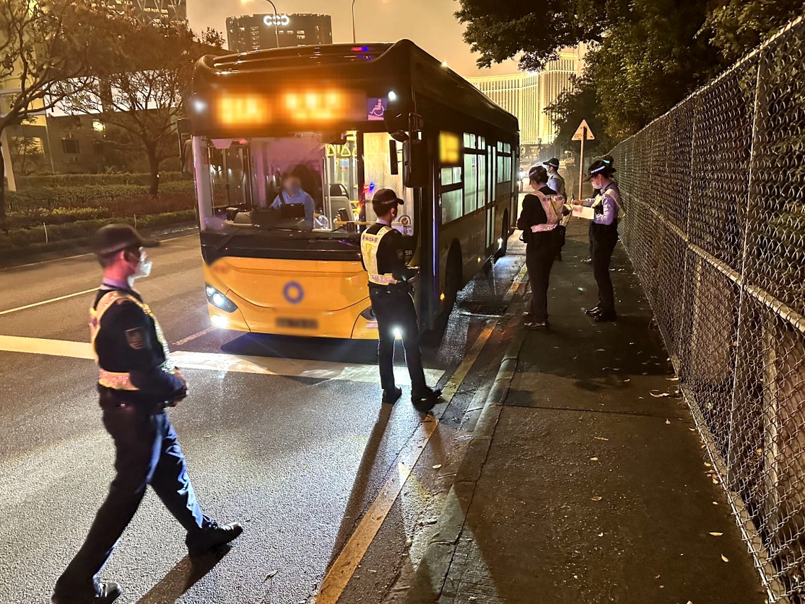 查車方面,共截查31輛車輛,截查共86人(43男43女),當中檢控3宗違例及1宗違法行為。上述3宗違例分別涉及行駛時沒有開啟車燈和未能出示駕駛執照,而1宗違法行為則涉及1名女子涉嫌醉酒駕駛。