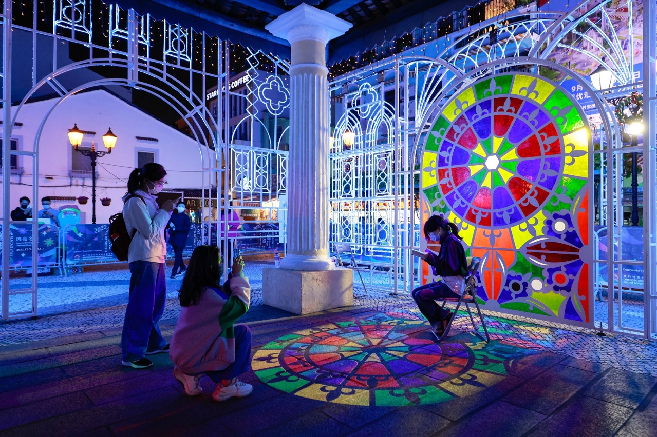 氹仔區方面,保留嘉模墟—“彩色花窗”燈光裝置(不設地面投影部份)及“花·Emoji”燈光裝置;氹仔牌坊繼續設有“冬日浪漫”燈光裝置。