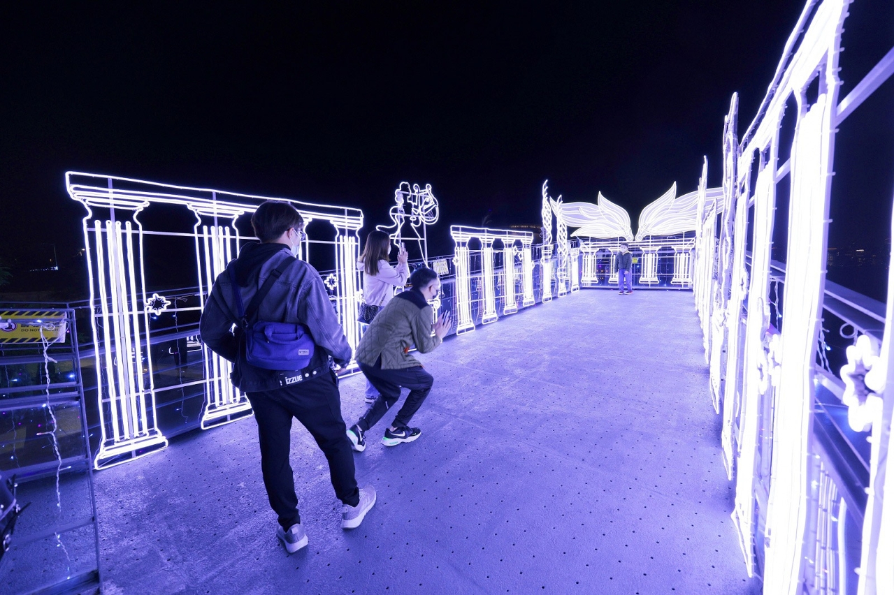 保留項目包括:中區的大關斜巷、俊秀圍、關前正街和關前後街—“萬物皆像素”燈光裝置;下環區的媽閣碼頭—“光之美術館”燈光裝置;南灣湖水上活動中心—“擁抱大自然”燈光裝置、連接南灣湖水上活動中心及南灣∙雅文湖畔長廊的“澳門歡迎您”燈飾佈置;新口岸填海區科學館心形樹地段的月下“樹”琴燈光裝置;連接澳門文化中心及觀音像海濱休憩區天橋的“天使之翼”燈光裝置同樣保留。