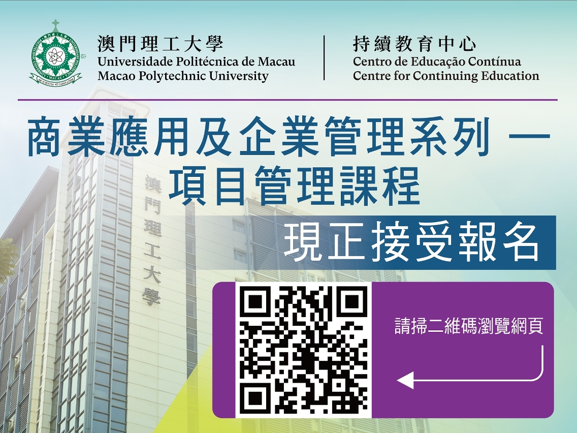 本澳公私營機構人員提升專業能力、自我增值,參加各類技術進修課程和管理實務培訓,已經形成了積極的氛圍,對於建構知識型社會必不可少。澳門理工大學持續教育中心為回應居民進修的需求,以應對產業變遷的人才轉型需要,近期推出多個系列的課程面向公眾招生,第一季度招生課程已納入教育及青年發展局持續進修發展計劃,合資格人士可選擇以持修計劃個人帳戶餘額支付學費。其他招生課程還包括公共行政實務系列課程、會展統籌、長者照顧、3D打印、商業傳意和公關實務等。有意報讀的人士可以網上報名https://www.mpu.edu.mo/zh/cec_enrolment.php,查詢報名手續可於辦公時間致電87950707 / 87950832或電郵至cec@mpu.edu.mo。