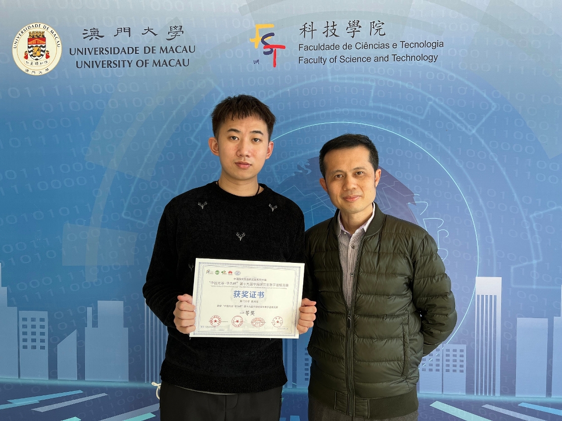 澳門大學科技學院數學系研究生黃鴻亮在第十九屆“華為杯”中國研究生數學建模競賽中擔任隊長並榮獲全國一等獎。競賽吸引全球共400多所大學、研究院等單位共17,970隊隊伍參與,獲一等獎比例僅為1%。