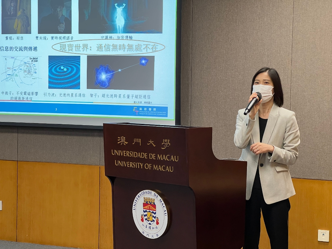 澳門大學今(14)日於大學展館演講廳舉行“澳大學人研究講壇”第10講,由澳大科技學院教授、智慧城市物聯網國家重點實驗室助理主任馬少丹以“移動通信—改變世界的奇妙魔法”為題發表演說。講座現場座無虛席,也有不少中學師生透過視像在線參與,反響熱烈。