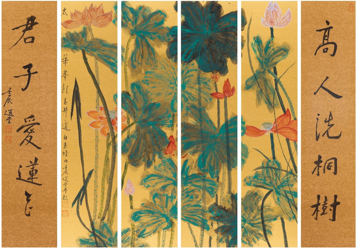 • 國學大師饒宗頤的《荷花四連屏連五言對聯》