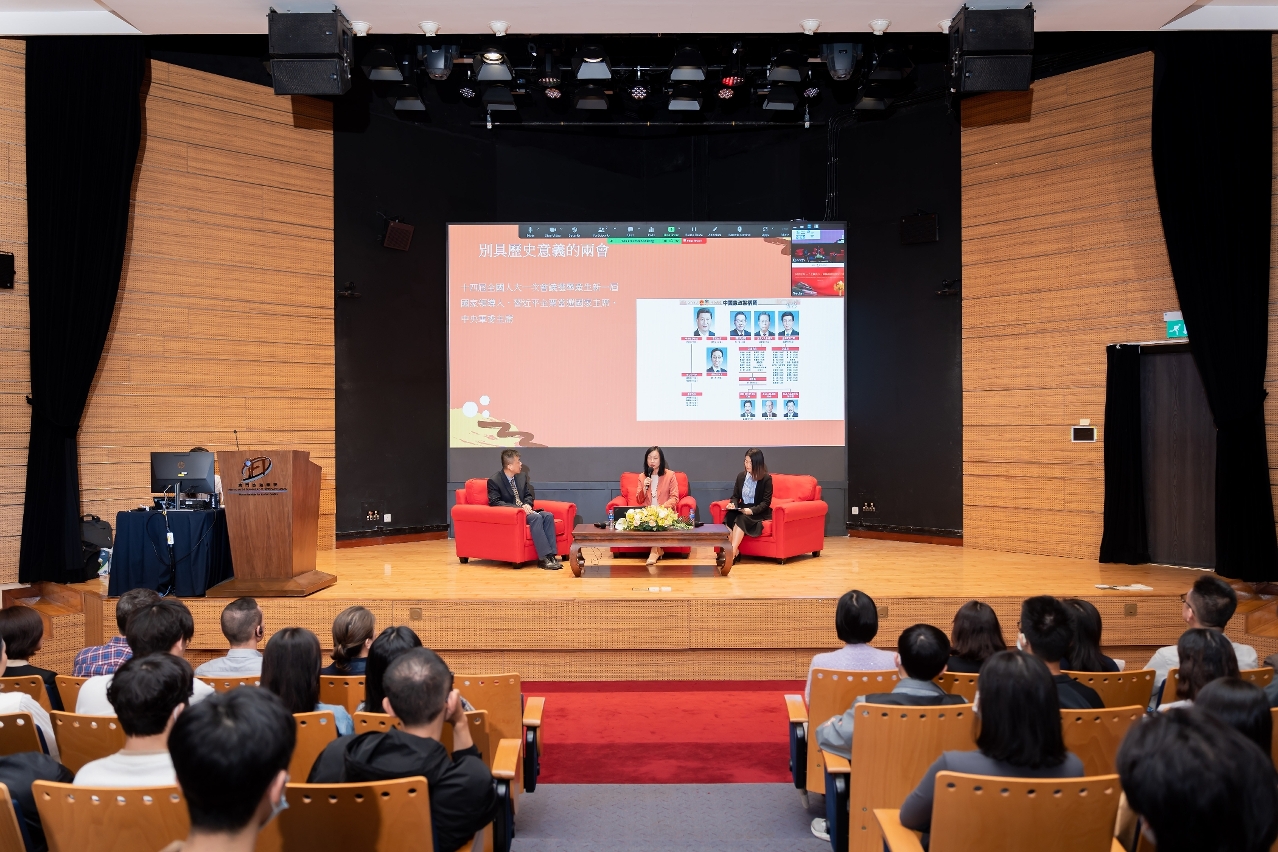 澳門旅遊學院3月22日於望廈校區啟思樓舉行兩會精神分享會,由全國政協委員、澳門旅遊學院院長黃竹君向師生們及其他高等院校參加者傳達兩會重要精神,暢談首次與會的感想體會。她冀望同學能立足學業,立志成才,踔厲奮發,準確抓緊國家發展帶來的機遇。