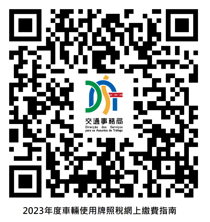 車主宜優先選用網上方式包括透過局方電子繳費網頁https://epay.dsat.gov.mo 、“交通資訊站”App或“一戶通”App/網頁版,或自助服務機繳納“行車稅”,有關網上及自助服務機的繳費操作、47個自助服務機的設置地點、獲取繳稅憑據方式、查詢繳納狀態及年度定期檢驗日期的詳情,可瀏覽局方網頁及相關的繳費指南(附QR Code)。