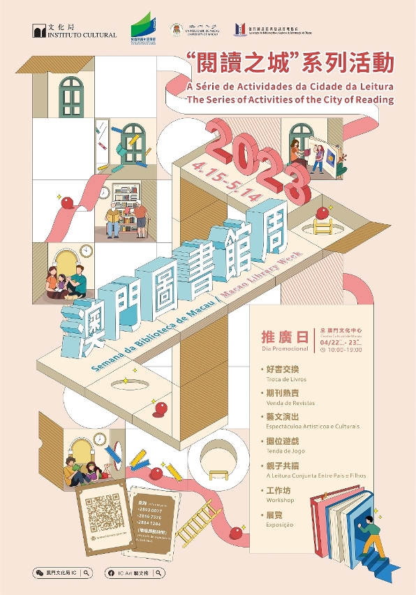 更多2023年“澳門圖書館周”系列活動資訊,可瀏覽文化局公共圖書館網頁 www.library.gov.mo 或於圖書館櫃台服務時間致電2893 0077或2855 8049。
