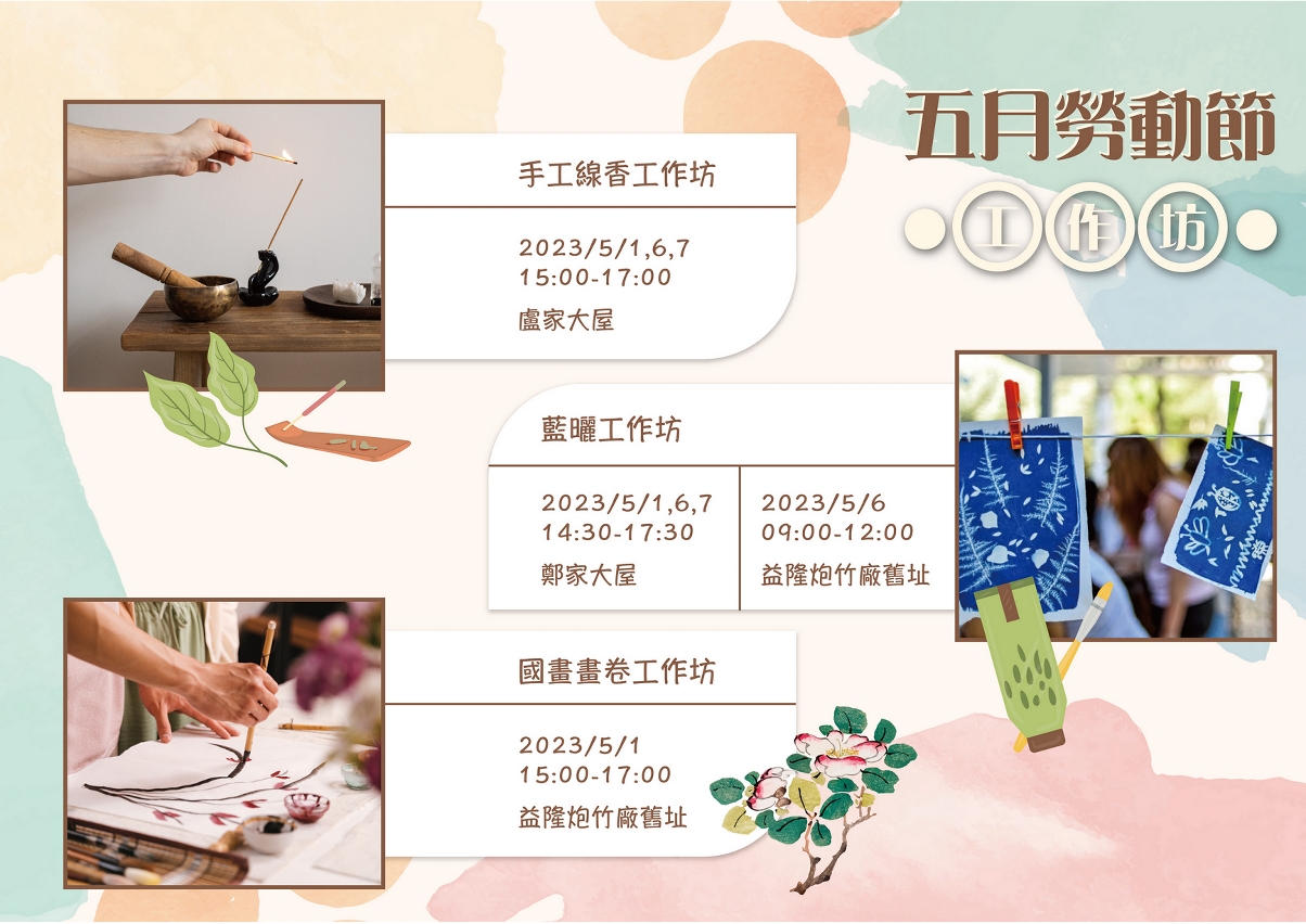為增添城市人文氣氛,同時宣傳愛護文物訊息,文化局將於勞動節期間(5月1、6及7日)在益隆炮竹廠舊址、盧家大屋及鄭家大屋舉辦以澳門文物景點為主題的工作坊,活動費用全免,有興趣參加者可於即日起透過“一戶通"報名參與。